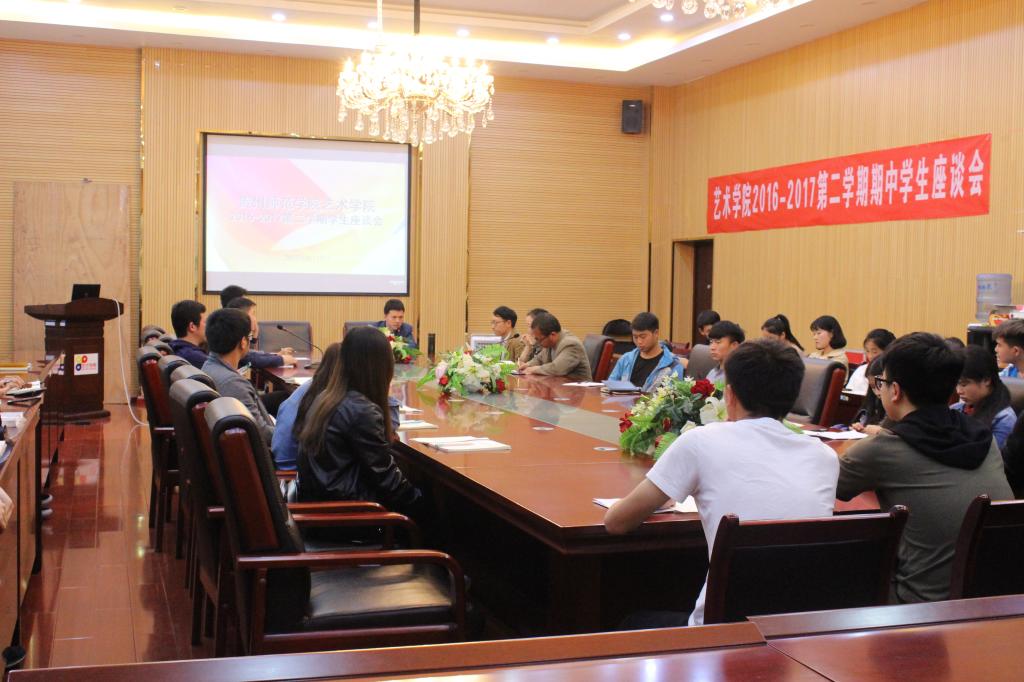 为优化艺术学院的管理体系,全面提升学院的教学质量,为学生打造一个更好的求学环境,5月15日,艺术学院在六楼会议室召开了2016—2017第二学期期中教学座谈会。艺术学院院长马关辉、党委副书记朱晨刚、院长助理路统宽出席了会议,各班班委和学生代表参加了会议。
