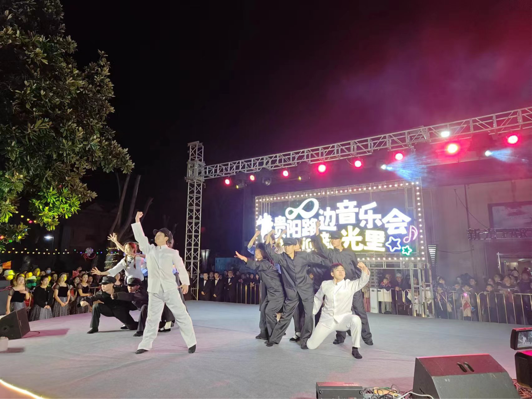 2023年12月9日晚,贵阳市乌当区新光里文化创意产业园灯光璀璨、夜色迷人,新的一场“贵阳路边音乐会·新光里”乌当复古音乐舞会正在激情上演,我院舞蹈系师生受贵阳市乌当区委宣传部邀请,参加了本场复古音乐舞会。据主办方介绍,乌当复古音乐舞会的举办,将居民生活融入到音乐舞蹈之中,通过活动搭建交流平台,促进邻里融合,丰富乌当区居民的精神文化生活,进一步提升社区居民的观赏体验感,拉近邻里之间的距离,让大家都参与到社区的共建共治共享中来。