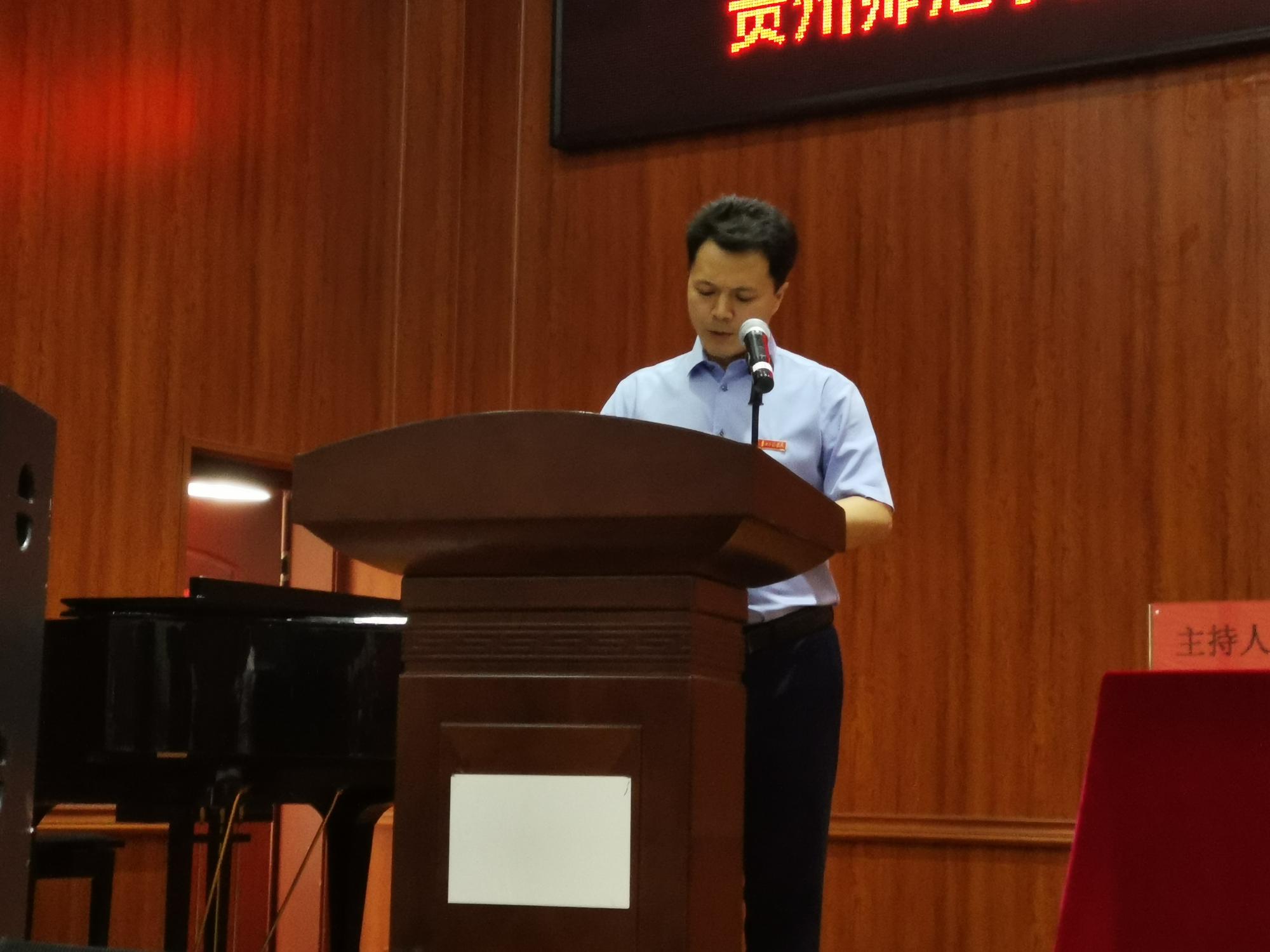 为了帮助贵州省各地区新入职小学音乐教师更好地胜任教学工作和履行岗位职责,提高专业素养和教学能力,促进新教师快速成长,7月22日上午,“国培计划”(2019年)中西部新入职特岗教师规范化培训项目(小学音乐)正式拉开帷幕,开班仪式在77779193永利官网集团六楼小音乐厅举行。77779193永利官网集团党委书记付巧、院长马关辉、办公室主任宋建强、音乐系主任王晓、音乐系副主任刘昊佳、实习实践办公室主任王铎以及全体参训学员参加了开班仪式,开班仪式由王晓主持。