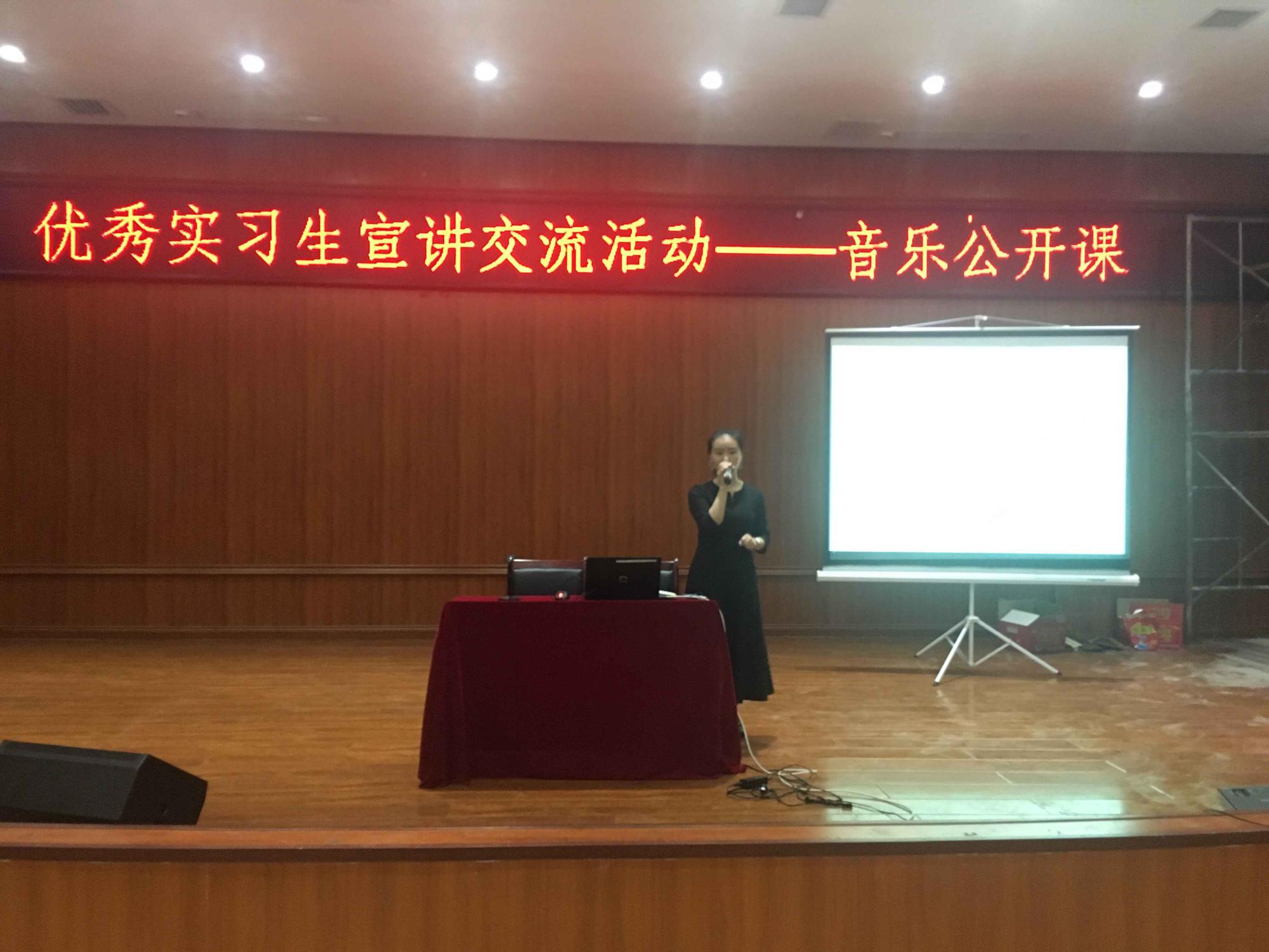 本次活动由优秀实习生罗佳精心准备的《依玛拉吉松》歌曲教学示范开始,之后各位优秀实习生依次上台为2016级的同学们分享了自己的实习经验和成果。