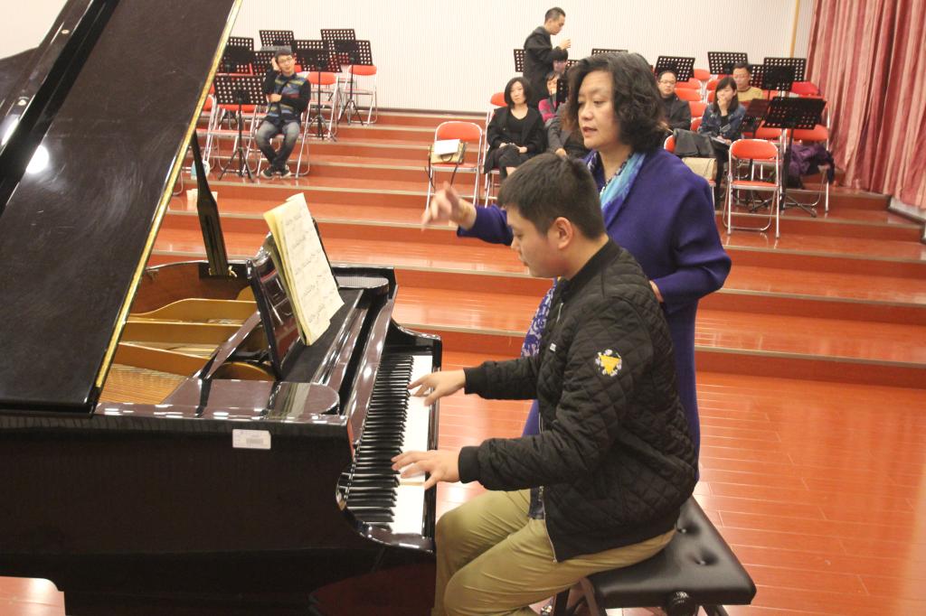 下午,张芳教授与音乐系钢琴组教师在艺术学院合唱排练厅进行现场授课,我院钢琴系每位教师都进行了现场演奏。张芳教授首先对我院教师的专业素养给予了高度评价,然后根据每位教师的特点进行了极具针对性的指导。