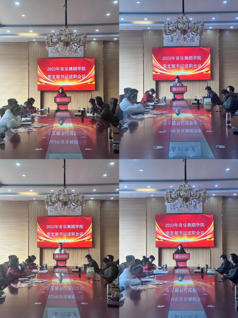 会上,党委书记李佩根据《关于开展2023年度党支部书记抓党建工作述职评议考核的通知》文件要求,强调了支部书记述职考评具体内容和要求。接着,学院四个师生党支部书记紧扣文件要求分别述职:教师党支部谭娇艳从日常支部工作、支部学习内容形式、党建工作与科研、教学、创作和融合成果等方面进行了汇报;音乐系学生第一党支部书记舒然在“党建+教学”、“党建+科研”、文化育人、赛事育人、协同育人、志愿服务育人等方面进行了汇报;音乐系学生第二党支部书记邹力征针对支部主题教育学习情况、支部发展、教育党员方面、如何创新发展学生党支部工建设工作等方面进行了汇报;舞蹈系学生党支部书记李金容从“两学一做”、“三会一课”的工作进展、建立健全党支部各项规章制度等方面进行汇报。各党支部书记针对工作中的缺点和不足,认真查摆问题、提出了具体改进思路。党委书记李佩对各党支部党建工作中存在的问题提出意见建议。