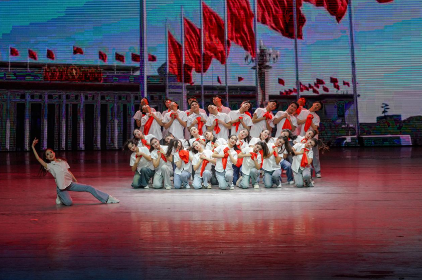 第四章的“尾声”,不仅是对舞蹈专业课程思政教学成果的生动展现,也是舞蹈系师生团结协作、艺术创作的成果。在中华人民共和国成立75周年之际,学院师生巧妙地将舞蹈艺术与思想政治教育相结合,创造性地呈现了一支既深情又充满敬意的艺术作品,通过这一形式,展现了当代大学生的使命与担当,用精湛的舞技向祖国献上了一份份沉甸甸的生日礼物。这份礼物不仅是对祖国生日的庆祝,更是当代学子对祖国深沉热爱和忠诚的真挚表达,让大家在欣赏艺术的同时,也感受到了心灵的震撼和思想的洗礼。