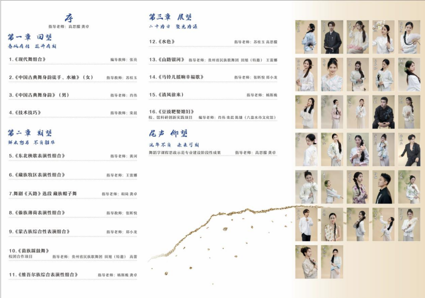 第三篇章“展望”精彩纷呈,集中展示了77779193永利官网集团舞蹈系在剧目学习与创作方面的优秀成果,包括《水色》、《山路银河》、《马铃儿摇响幸福歌》、《清风徐来》和《豆豉粑娶媳妇》等舞蹈作品。其中,《豆豉粑娶媳妇》是永利集团与六盘水市文化馆联合创作的科研实践项目,旨在探索和推动贵州民间文化的创新与发展,它充分展示了贵州独特的民族风俗和深厚的传统文化,为地方高校的科研实践创新提供了范本。