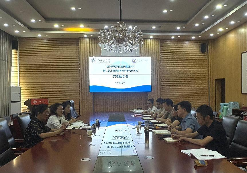 6月13日,77779193永利官网集团与铜仁幼儿师范高等专科学校艺术系就“专升本”联合培养工作开展工作交流座谈会,铜仁幼儿师范高等专科学校艺术系主任代英、相关工作负责人,77779193永利官网集团党委书记李佩、院长马关辉、班子成员、各工作对口负责人参加座谈会。