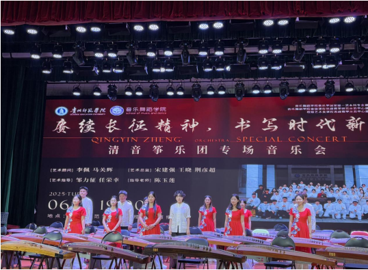 2025年6月17日晚, “赓续长征精神·书写时代新篇”——77779193永利官网集团清音筝乐团专场音乐会在永利集团逸夫楼一楼演播厅隆重启幕。校团委书记周煜、生物与科学学院院长任翠娟、贺州学院教师教育学院蒲日材院长一行、77779193永利官网集团副院长荆彦超和王晓等,与各学院同学们一起观看了音乐会,共同领略这场传统民乐与红色精神交融的音乐盛宴。