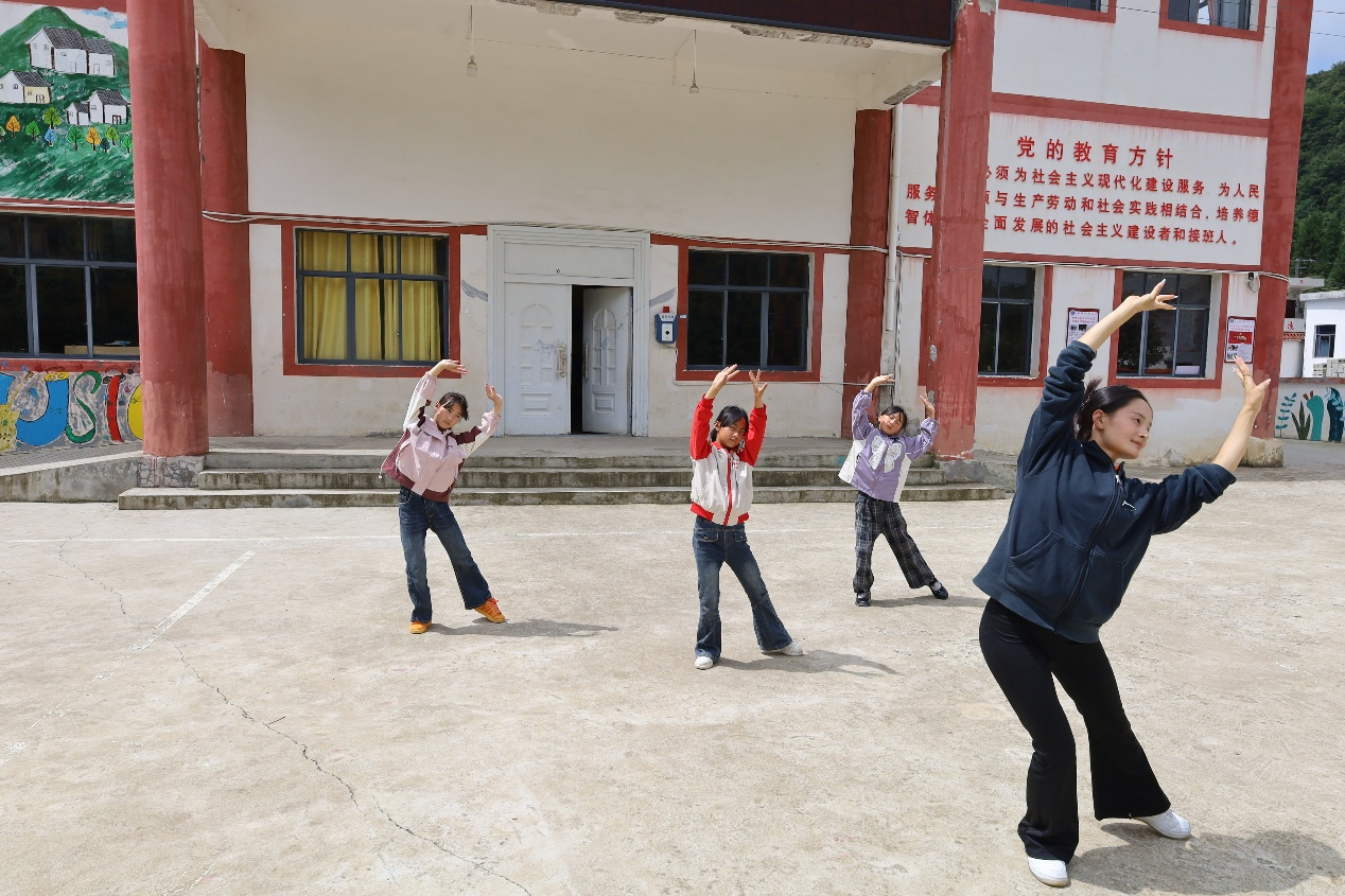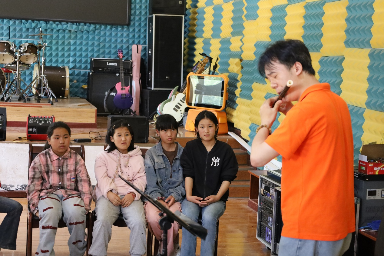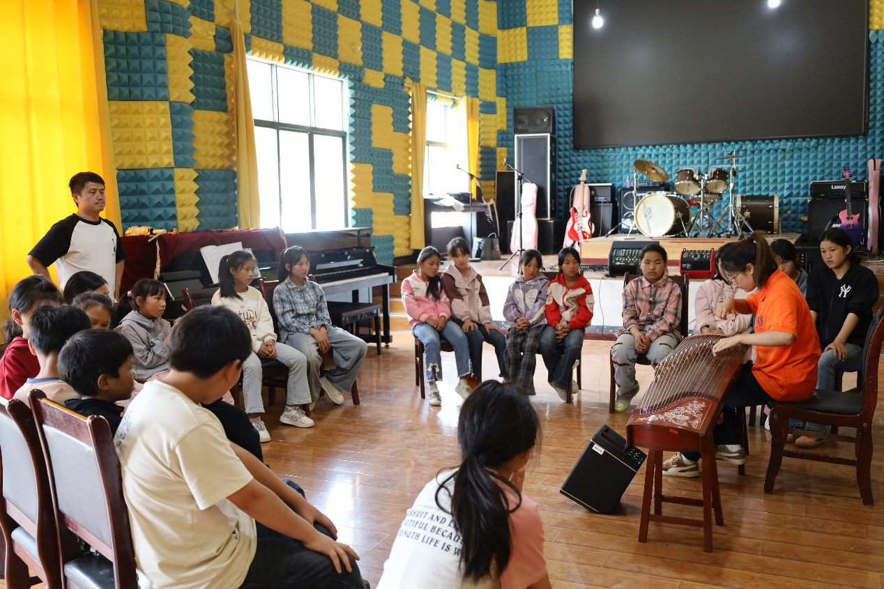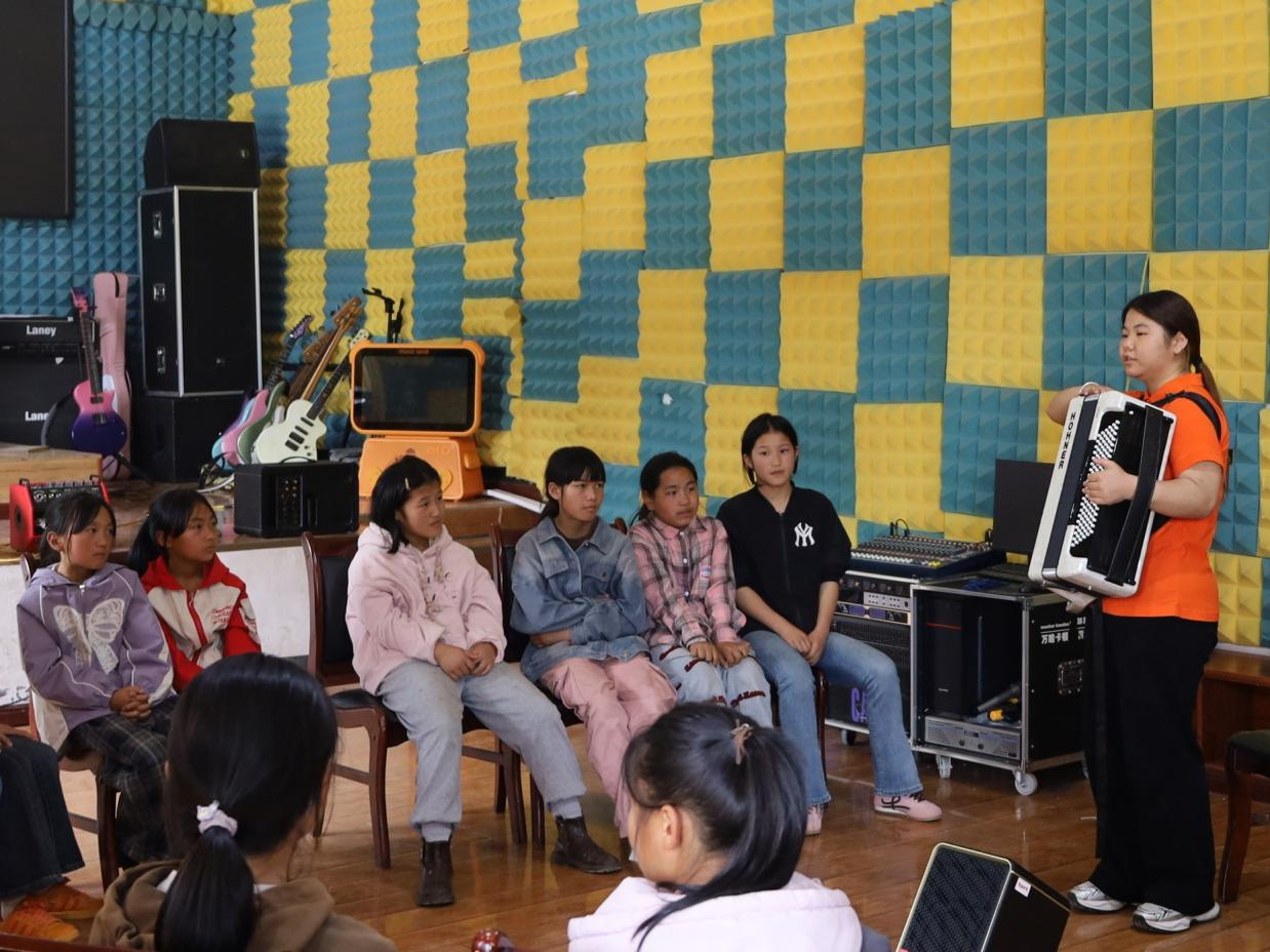 展示环节结束后,志愿服务队立即切换至教学频道,分组投入实践。声乐课堂中从呼吸根基入手,雕琢人声之美;舞蹈教室里细致规范动作,打磨肢体韵律;器乐工坊中耐心调整细节,精研演奏之道。“小老师”们将专业知识化作润物春雨,让艺术的种子在山乡课堂悄然播撒,静待生根发芽。