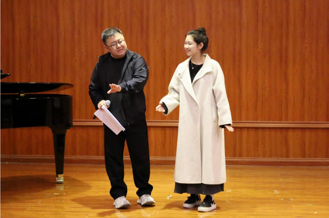 讲座正式开始后,李亚东教授以“心儿在歌唱”为核心,将自身数十年的舞台实践经验与系统化的教学理念深度融合,以理论结合实践的方式,从声乐呼吸控制、共鸣腔体运用到情感表达与作品理解,层层递进地讲解声乐演唱的关键技巧。在公开课互动环节,多位同学主动上台展示演唱曲目,李亚东教授针对每位同学的演唱特点进行耐心、细致、专业地指导,既指出技巧上的不足,更给出可操作的改进建议,让上台的同学收获满满,也让台下师生深受启发。