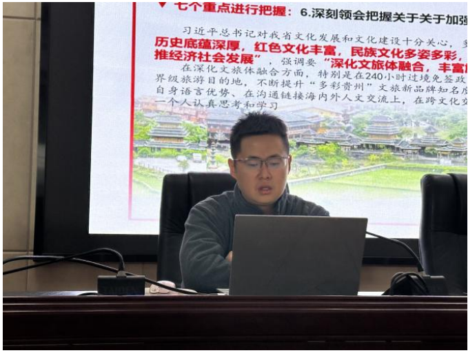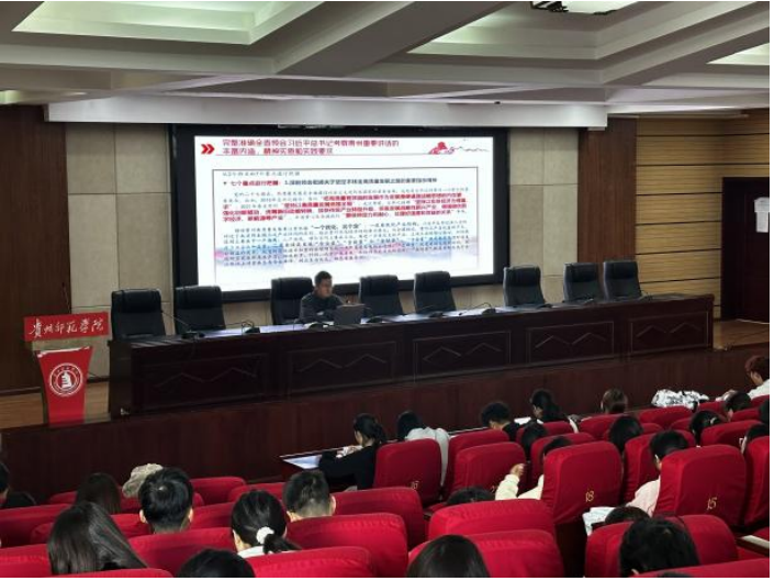 讲座伊始,严兴诚强调了团课培训的重要意义,并就培训期间的学习纪律提出了明确要求。随后,他以习近平总书记亲临贵州考察为主线,系统梳理了总书记为贵州全面推进强国建设所擘画的发展路径,并围绕“两个特点”与“七个重点”进行了深入阐释。最后,他鼓励全体学员要在教育与实践相结合的过程中,坚持以高质量发展统揽全局,认真落实总书记“坚定信心、苦干实干、稳中求进、善做善成”的重要指示。