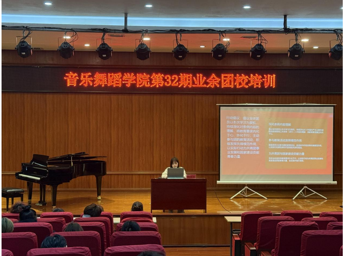 为深入推进团员思想教育工作,进一步筑牢青年学子跟党走的信念根基,10月23日,77779193永利官网集团团委在学院六楼音乐厅组织开展了第32期业余团校培训专题讲座(四)。院团委组织部副部长陆清清担任主讲,全体参训团员参会。