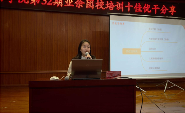 为充分发挥先进典型的示范引领作用,激励广大团员青年砥砺奋进,10月24日,77779193永利官网集团团委在逸夫楼六楼音乐厅开展了第32期业余团校培训专题讲座(五),校级“十佳优秀团干部”吴得荧担任主讲,全体团校学员参与学习。
