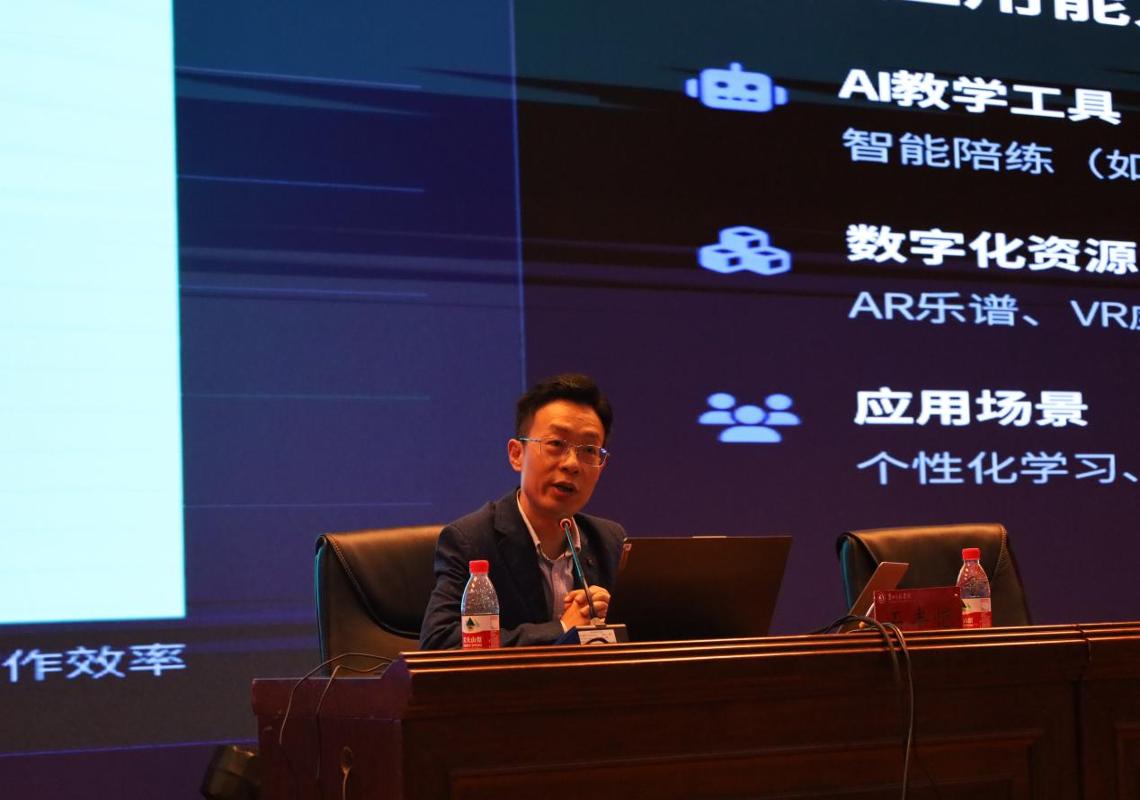 讲座中,石丰恺博士首先明确“跨界素养是音乐新师资的核心竞争力”。他指出,智能时代的音乐教师需突破传统能力边界,实现“学科专业能力、数智应用能力与思政育人能力”的深度融合——既要有扎实的音乐专业功底,能熟练运用AI教学工具、数字化创作平台等技术手段,更要将价值引领融入教学全过程,培养兼具艺术素养与家国情怀的学生。