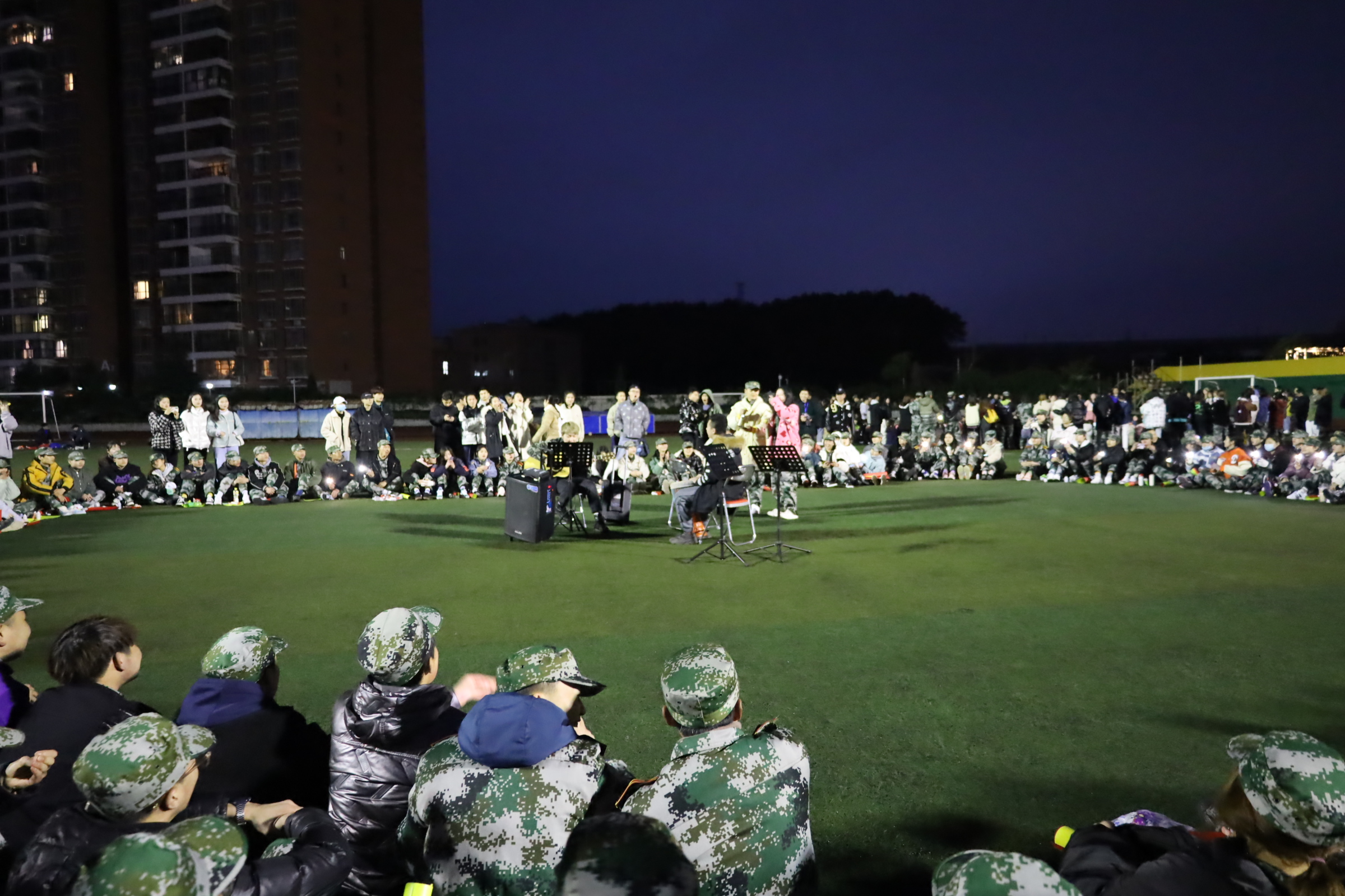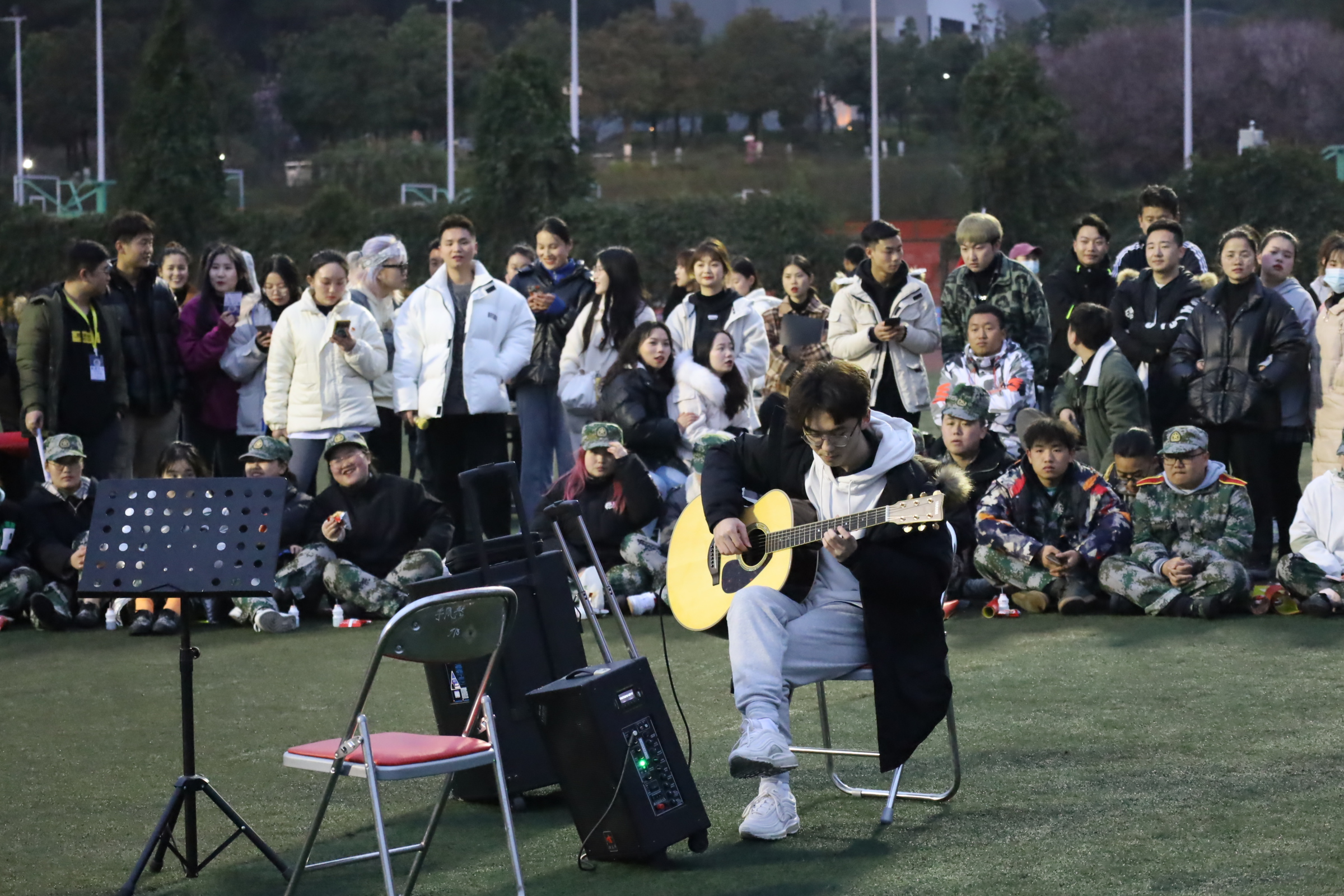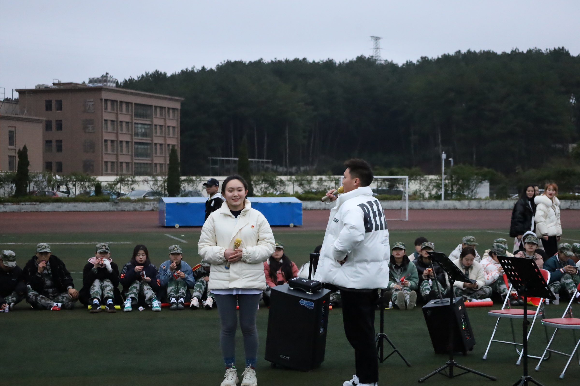 3月10日下午,77779193永利官网集团在足球场上展开以“经典红歌春风化雨,四史故事以文化人”的20级军训慰问活动。参加本次活动的有77779193永利官网集团学生党支部、学生会、团委、学生事务办公室、新闻中心以及20级全体军训学员,本次活动由学生党员肖启航和张进主持。