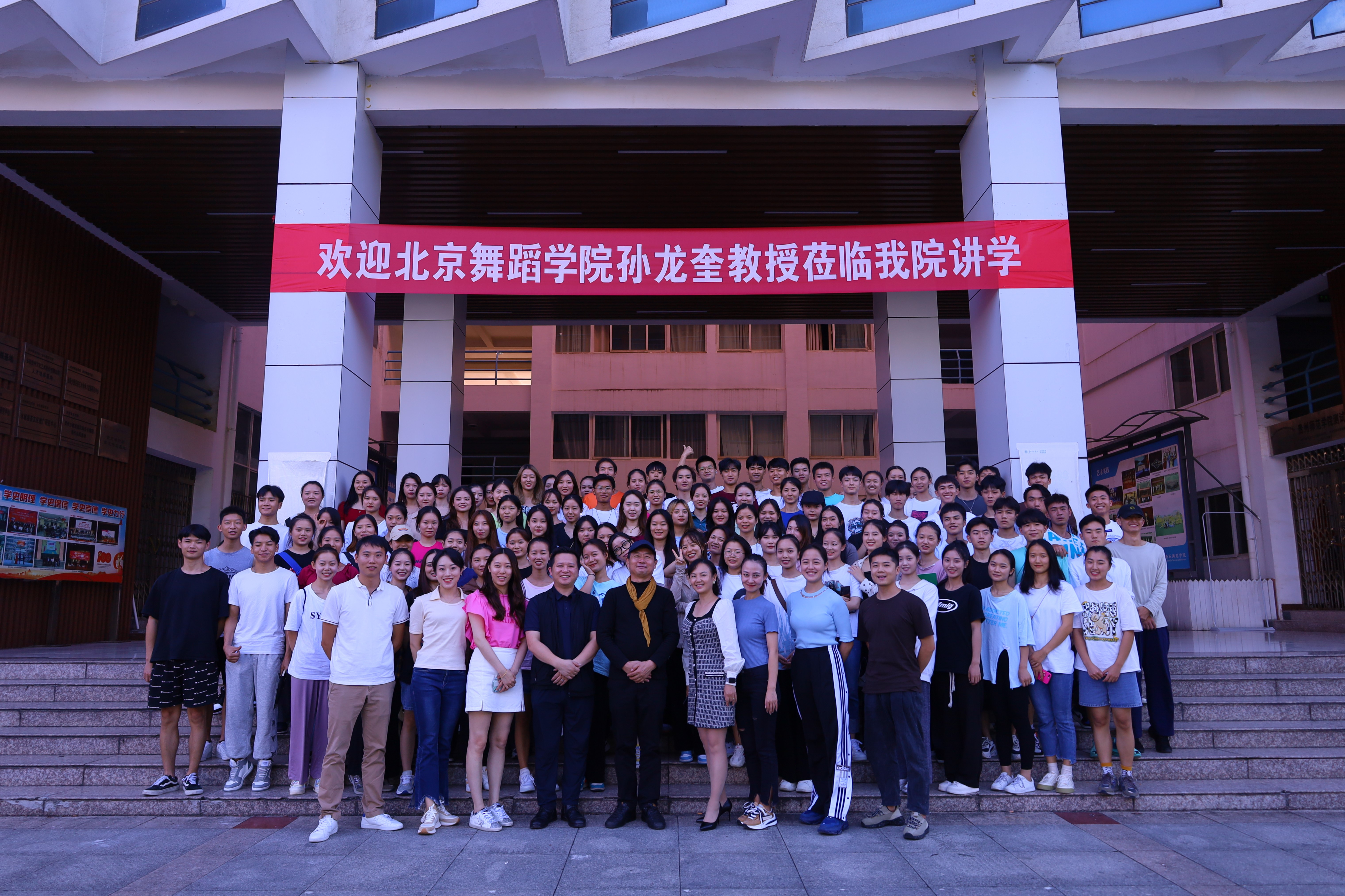 首先,肖伟向大家介绍了孙龙奎教授。讲座开始,孙龙奎教授围绕舞蹈作品创作的立意、结构、主题等详细讲述了作品创作的理论知识与创作技法,他提到舞蹈创作要有三力:“联想力”、“想象力”和“创造力”。接着孙龙奎播放了部分原创作品并进行分析,现场学习气氛浓烈,孙龙葵教授对舞蹈作品的剖析、对舞蹈作品的编创、舞蹈作品结构解读以及舞蹈作品解构方式、思维方式等方面进行了细致的讲解。讲座结束后,舞蹈系全体师生与孙龙奎教授于学院楼下进行合影留念。