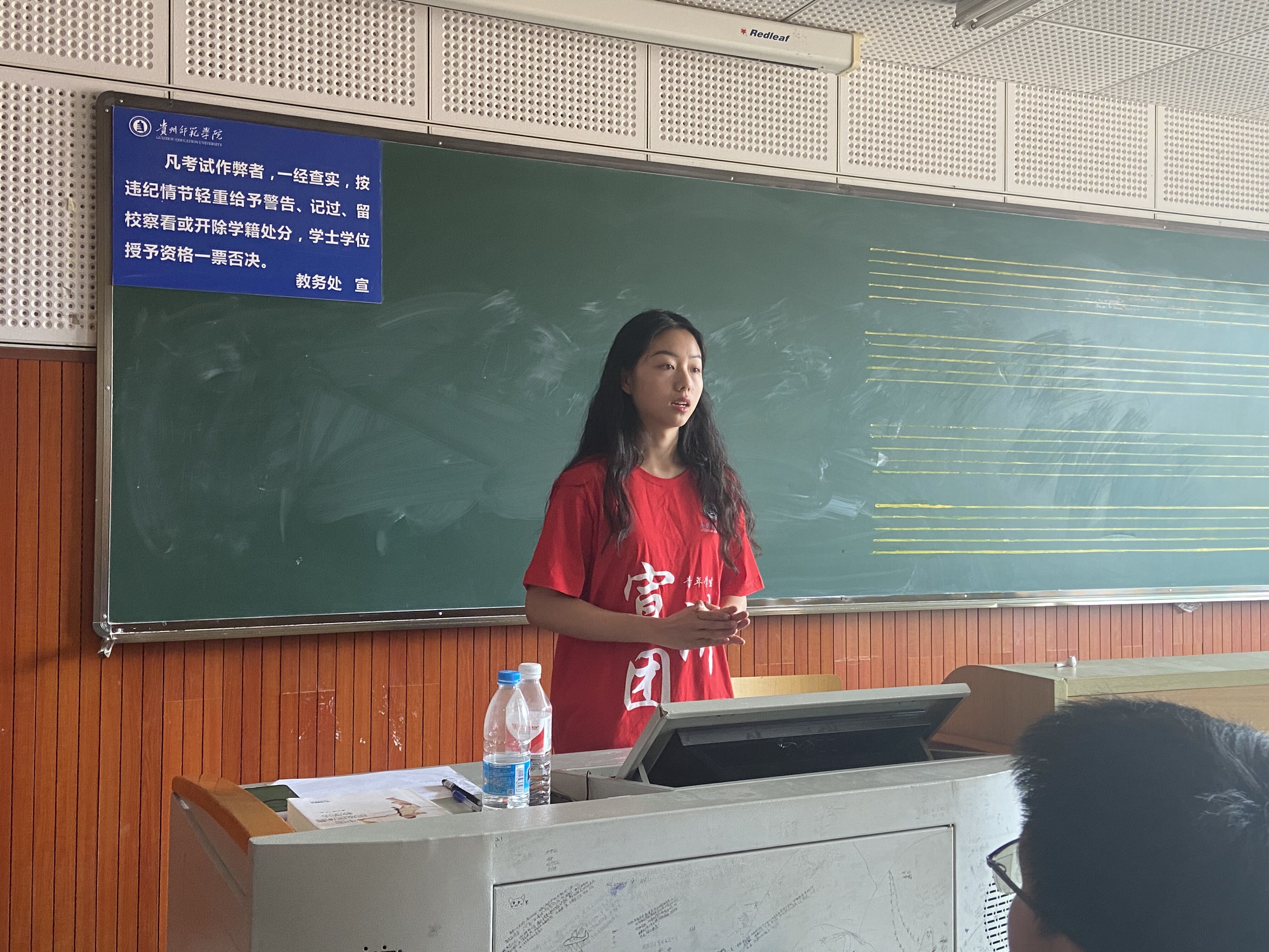 首先,胡广萍向大家重温李大钊同志的英勇事迹,深刻感受这位伟人的革命精神。随后,胡广萍向大家介绍了中国共产党早期的优秀党员和革命烈士蒋先云,通过讲解蒋先云同志为国奉献的一生,同学们明白了“劝君莫惜金缕衣,劝君惜取少年时”的道理,背负着无数前辈期许的我们要牢记革命先烈的红色精神,为建设祖国未来不懈奋斗。最后,胡广萍告诉我们要以时刻牢记先辈遗志,不忘初心使命,以史为鉴,才能砥砺前行。