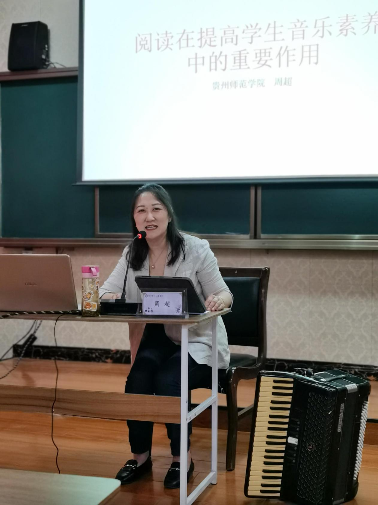 《阅读在提升学生音乐素养中的重要作用》由周超老师主讲,周老师提出了阅读对于乡村学生的重要性,并针对如何提升学生的综合音乐素养进行了详细的阐述和分析。并对乡村学生阅读能力相对较低这一现象进行了分析和总结,指导教师如何更好的开展器乐社团教学及活动。