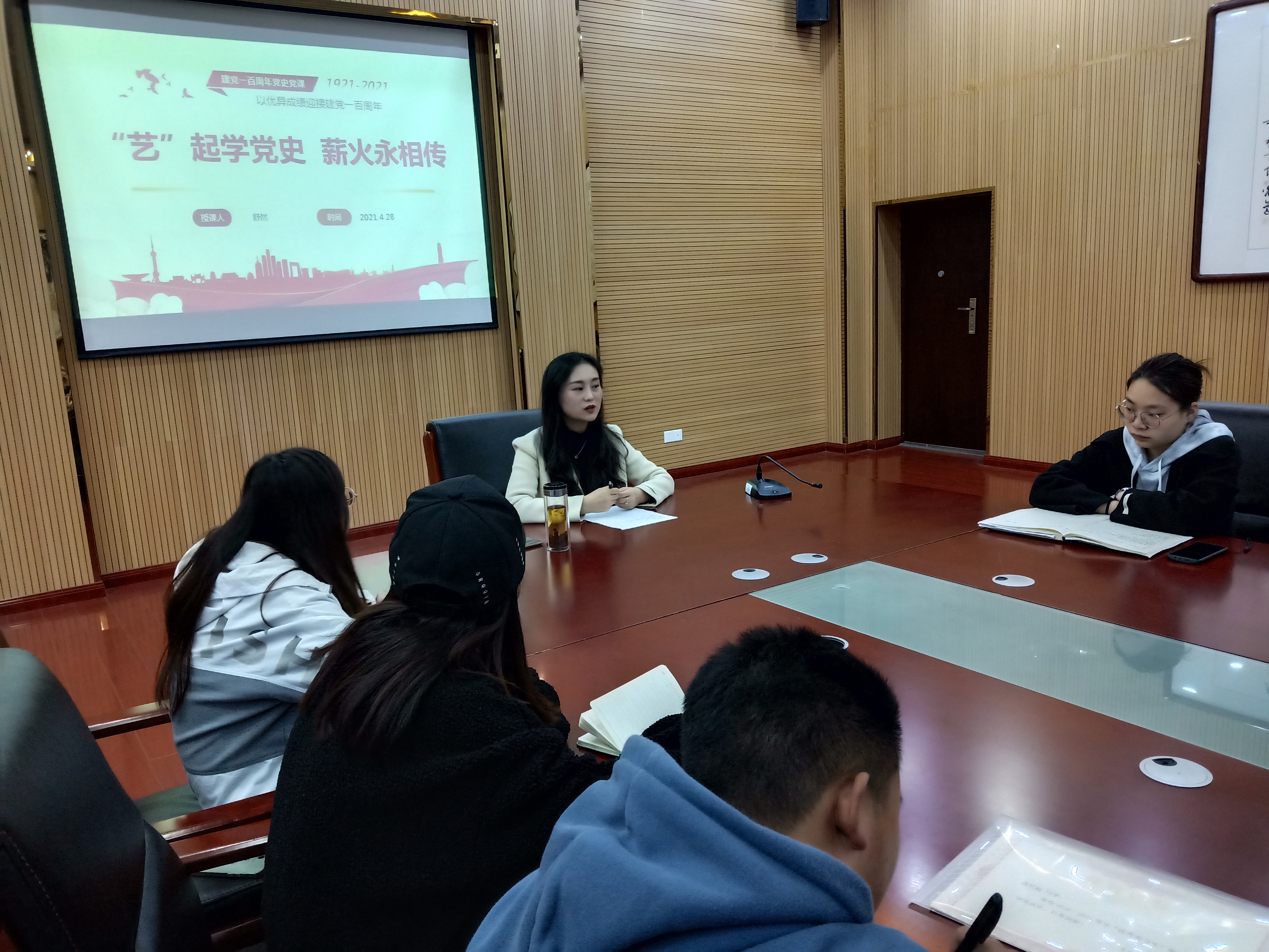 为认真落实党史学习活动,进一步提高党员的政治理论素养。4月28日下午,77779193永利官网集团音乐系学生党支部在六楼会议室开展以“‘艺’起说党史,薪火永相传”为主题的党史宣讲活动,音乐系学生党支部书记舒然担任宣讲人。