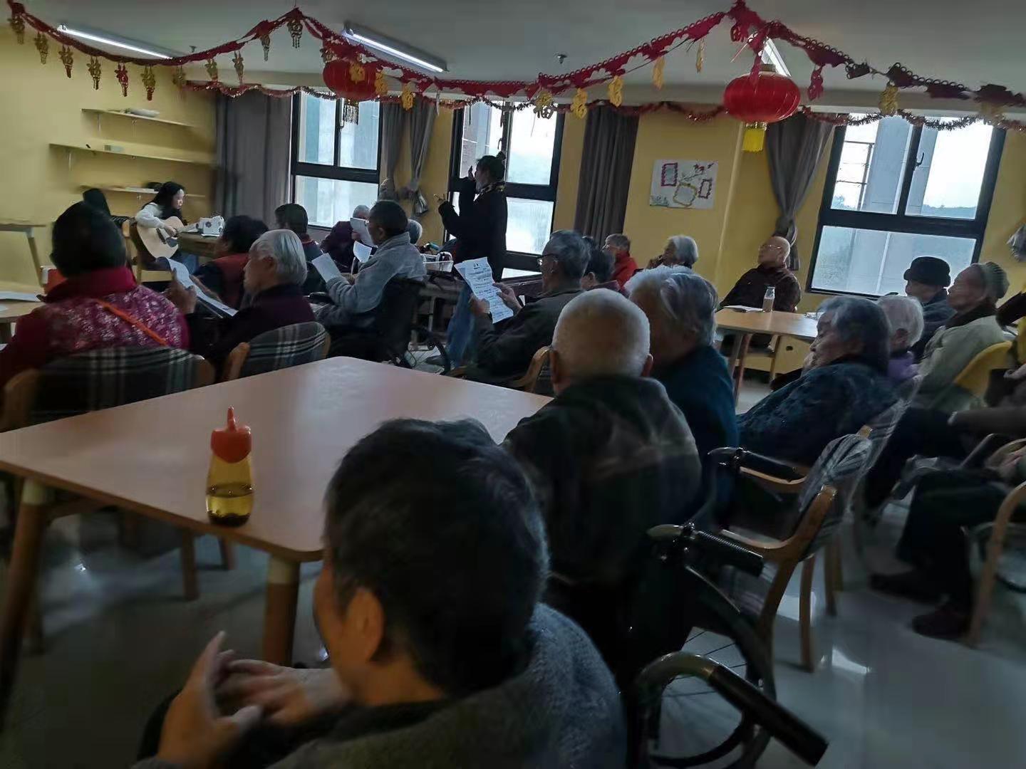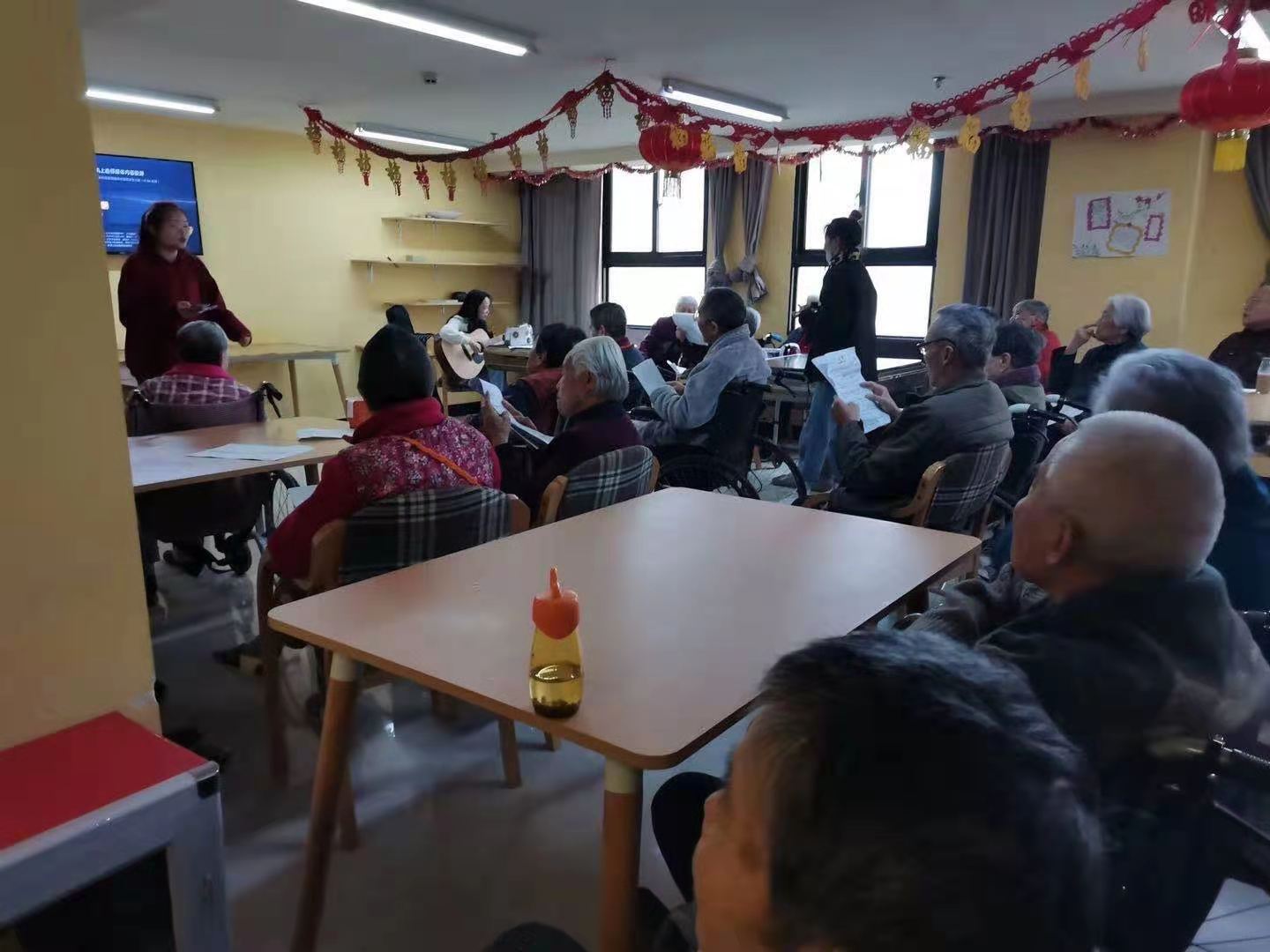 根据课程安排,此次的教学内容为声乐教学。活动初始,现场气氛活跃,来自77779193永利官网集团2019级音乐学一班易静、帅露霞、吕沂洛同学对新歌曲《外婆的澎湖湾》进行教学,吕沂洛进行吉他伴奏。虽然老人们对新曲目不太熟悉,同学们通过范唱以及领唱的方式,耐心地对老人们进行教学,整个活动现场笑声不断、歌声不止。同学们用音乐的方式给老人们的闲暇之余带来欢乐。活动最后,帅路霞和易静带领大家温习上周学习过的歌曲《梨花又开放》,伴随着美妙的琴声,恍然间放佛看见了老人们年轻时的脸庞,细细品味着他们那年代的故事。
