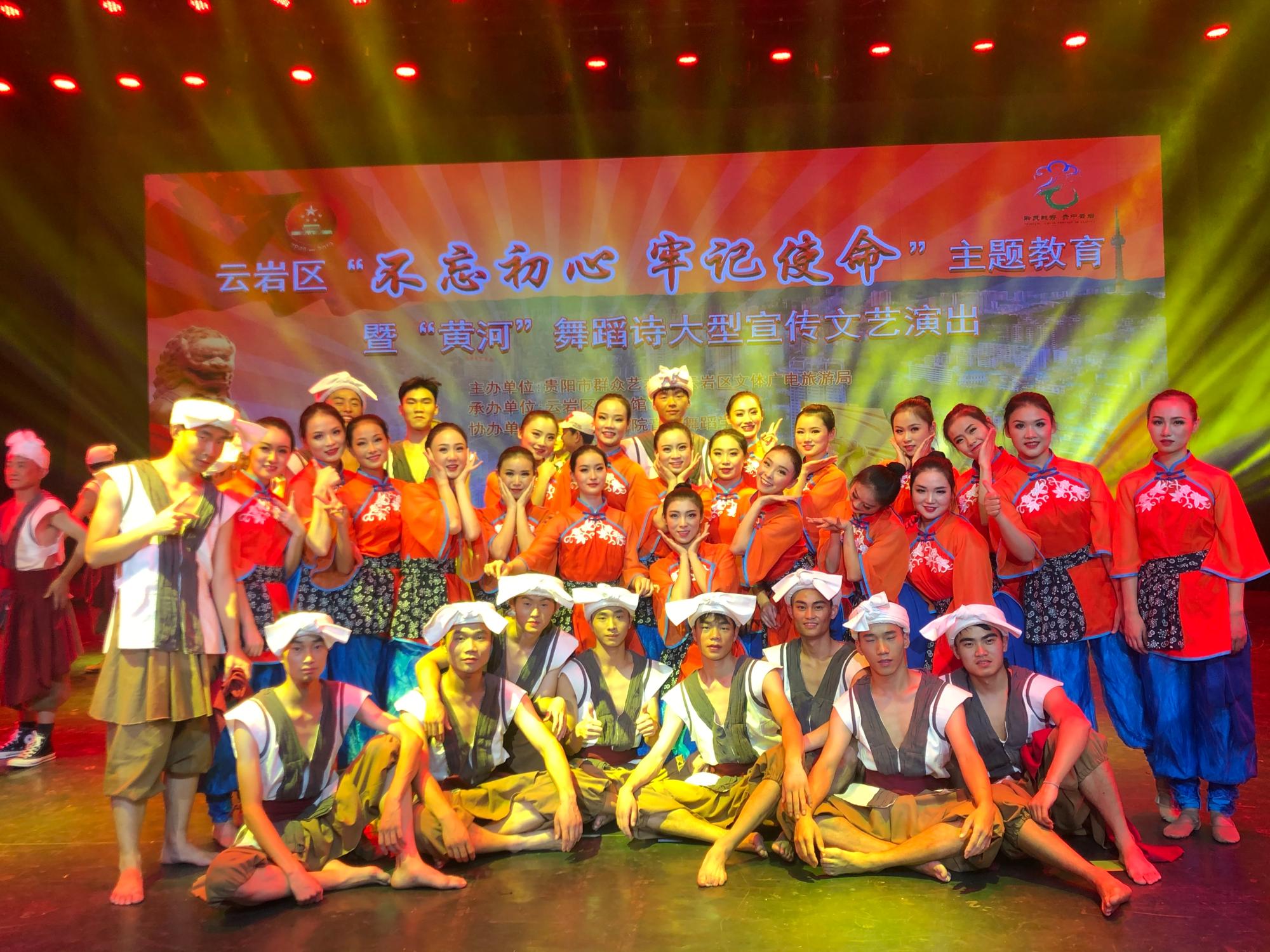 在迎接新中国成立70周年之际,由贵阳市群众艺术馆、云岩区文体广电旅游局主办,云岩区文化馆承办的大型舞蹈诗“黄河”在云岩区星光剧场演出。我院师生党员表演的舞蹈《黄河》其中一个片段节目,黄河同志们带领青年学生和各个舞蹈团共同打造了这台晚会,在大家的共同努力下晚会得以圆满成功。