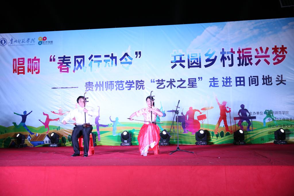 4月21日至22日,永利集团“唱响春风行动令.共圆乡村振兴梦”文艺小分队一行40人在校党委副书记令狐彩桃的带领下,走进印江土家族苗族自治县的村组寨户、田间地头,用老百姓喜闻乐见的艺术形式宣传党的十九大精神、乡村振兴战略、贵州省脱贫攻坚春风行动令等,为脱贫攻坚整县摘帽凝心聚力加油鼓劲。