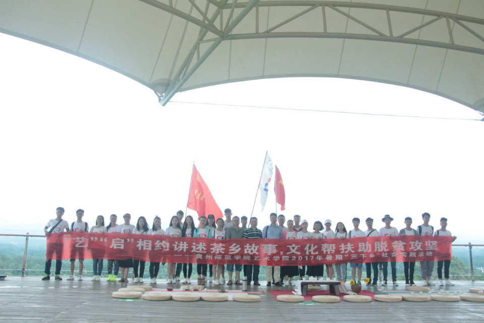 在湄潭县政府的大力支持下,志愿者们前往了本地多个特色景点,参观了核桃坝村、田家沟村以及七彩部落等具有茶乡代表的文化基地。志愿者们感受到了在党的光辉下城镇生活的巨大变化,也提升了艺院学子的茶文化知识与修养。值得一提的是,同学们前往了永兴镇万亩茶海,亲身实地体验了采茶工作。学生们头戴斗笠、身背茶篓,妙趣横生,在讲解员的指导下,学生认真地体验了茶农的艰辛。
