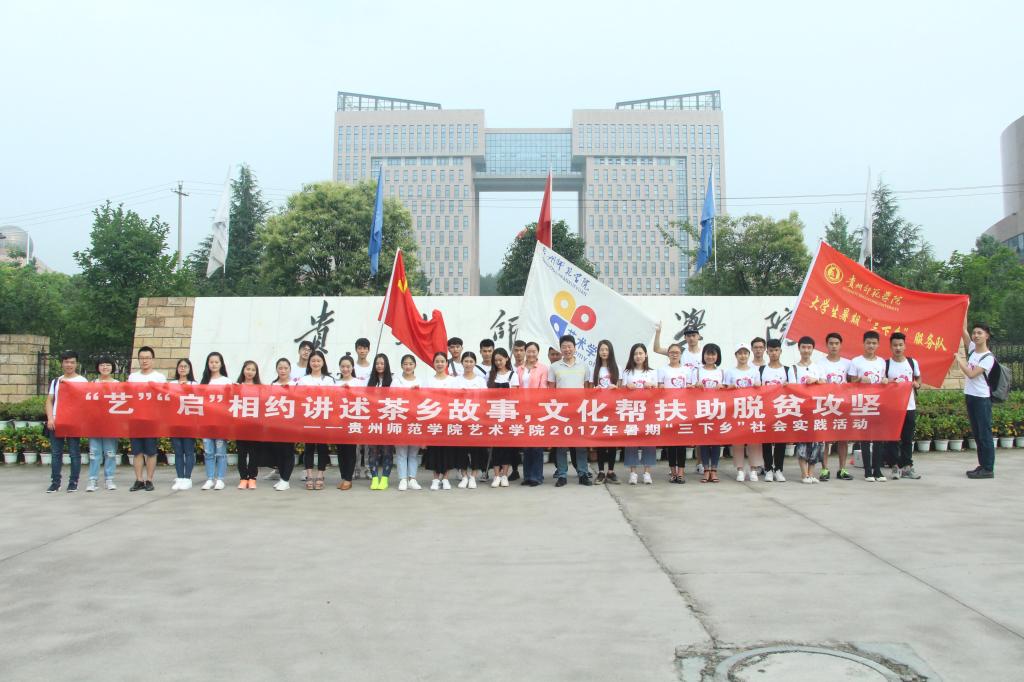 踏着盛夏的光辉,怀着热忱的心情,7月10日上午8时,艺术学院炫美阳光服务队经过前期的精心筹备和酝酿,在学院党委书记付巧、党委副书记朱晨刚、团委书记舒然的带领下前往遵义市湄潭县协育中学开展2017年暑期“三下乡”志愿服务实践活动。
