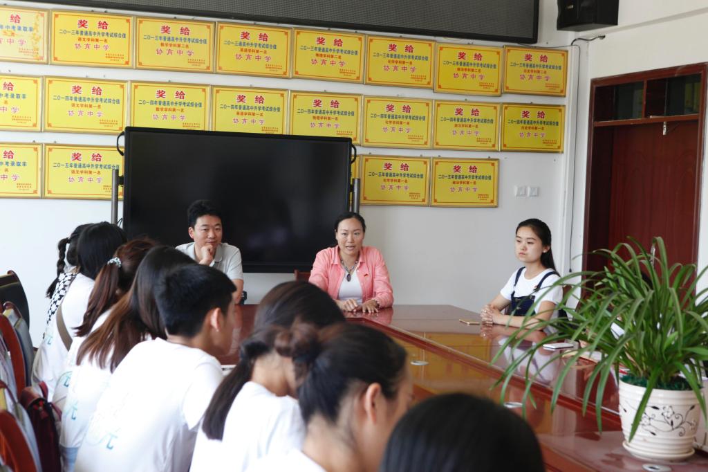 中午14时,全体同学在协育中学会议室召开了工作会议。付巧和朱晨刚就纪律要求、工作分配、日程安排、团结协作等方面作出了指示;舒然也具体强调了宣传工作、节目编排等方面的问题;最后,协育中学负责交接工作的老师骆丹对志愿者们的到来表示热烈欢迎,并表示该校会尽量满足同学们的教学和生活要求。会后,各专业负责人开始带领同学们进行初步教学活动,同学们耐心教学,都把自己的专业所学发挥到了最大化。