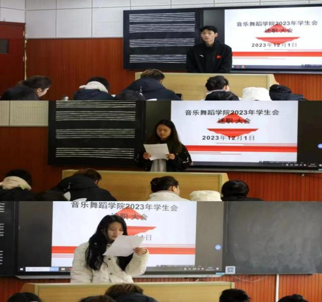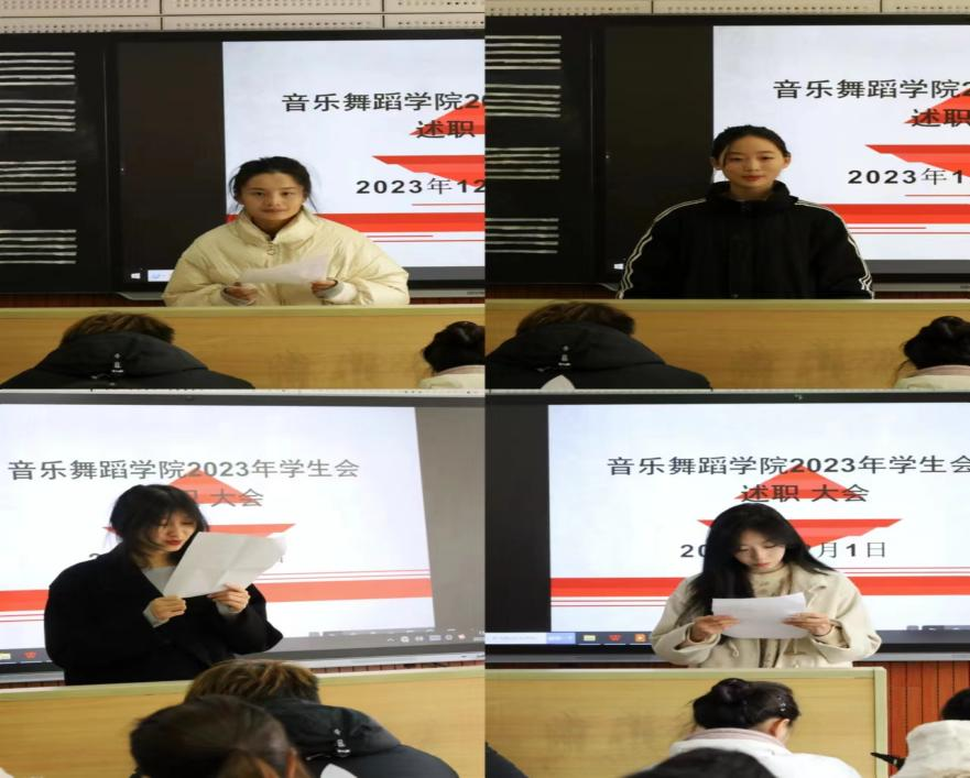 学生会主席团成员、各部门负责人及部员就本年度参与工作、思想建设等相关情况进行了述职。