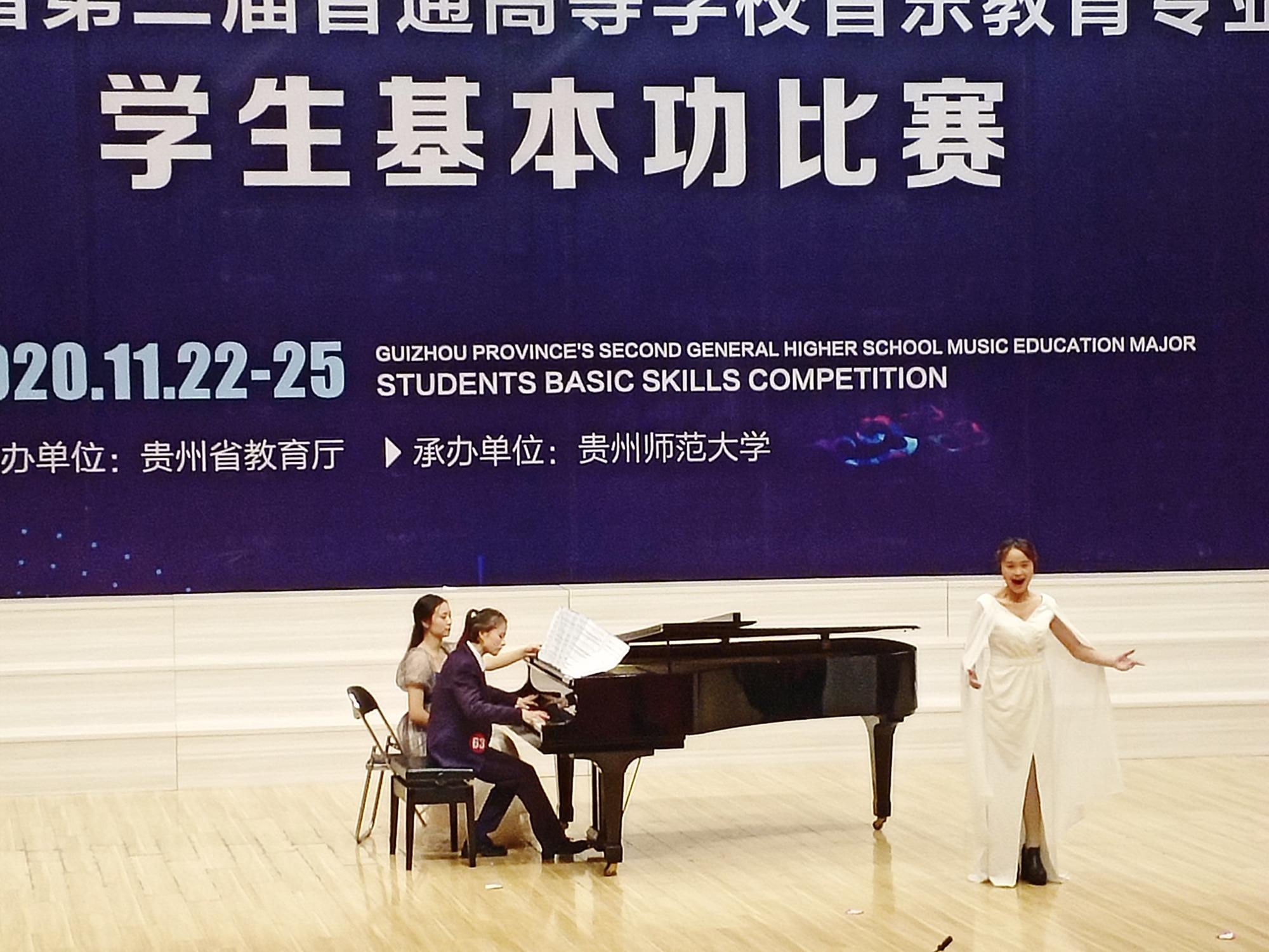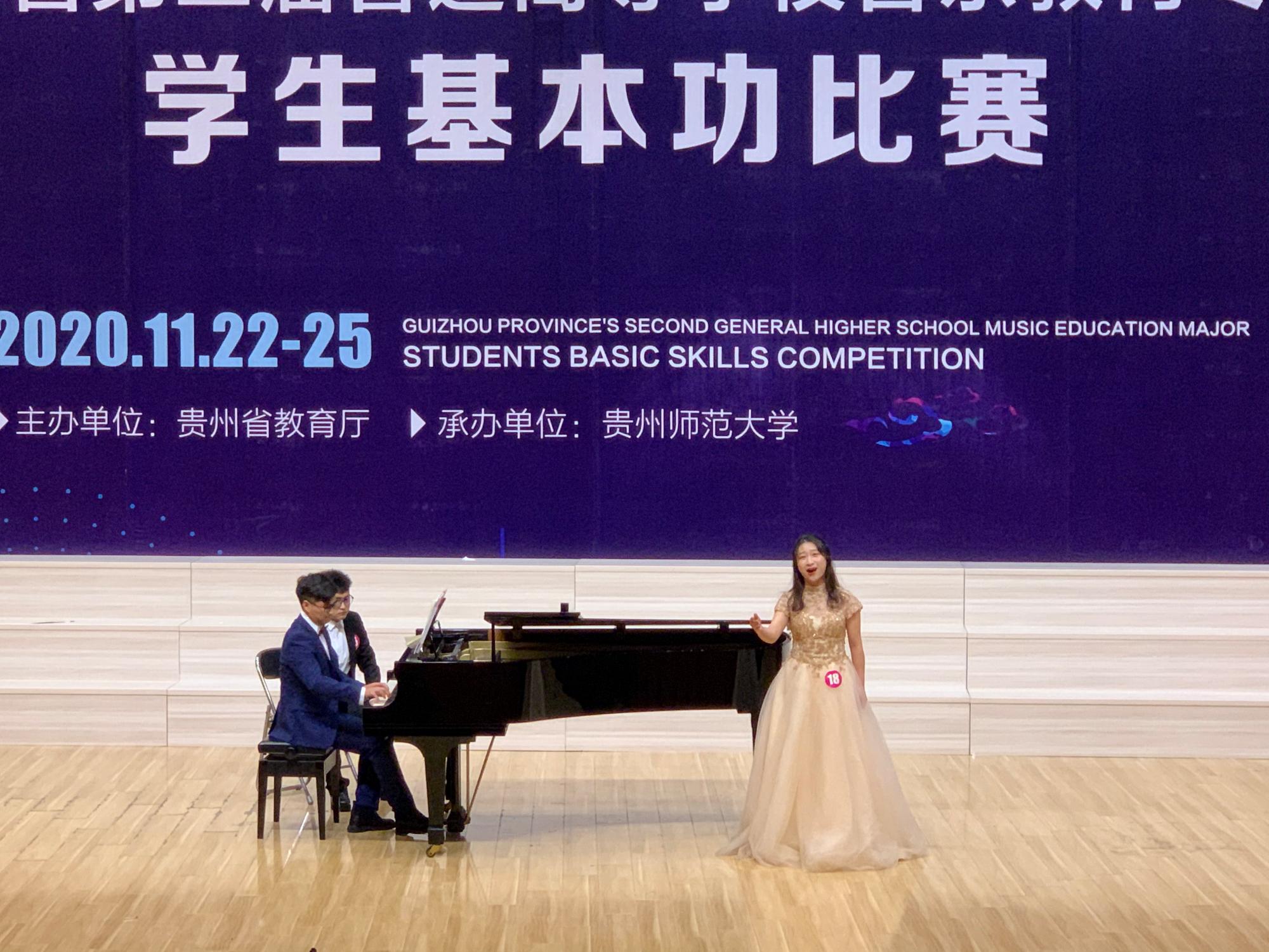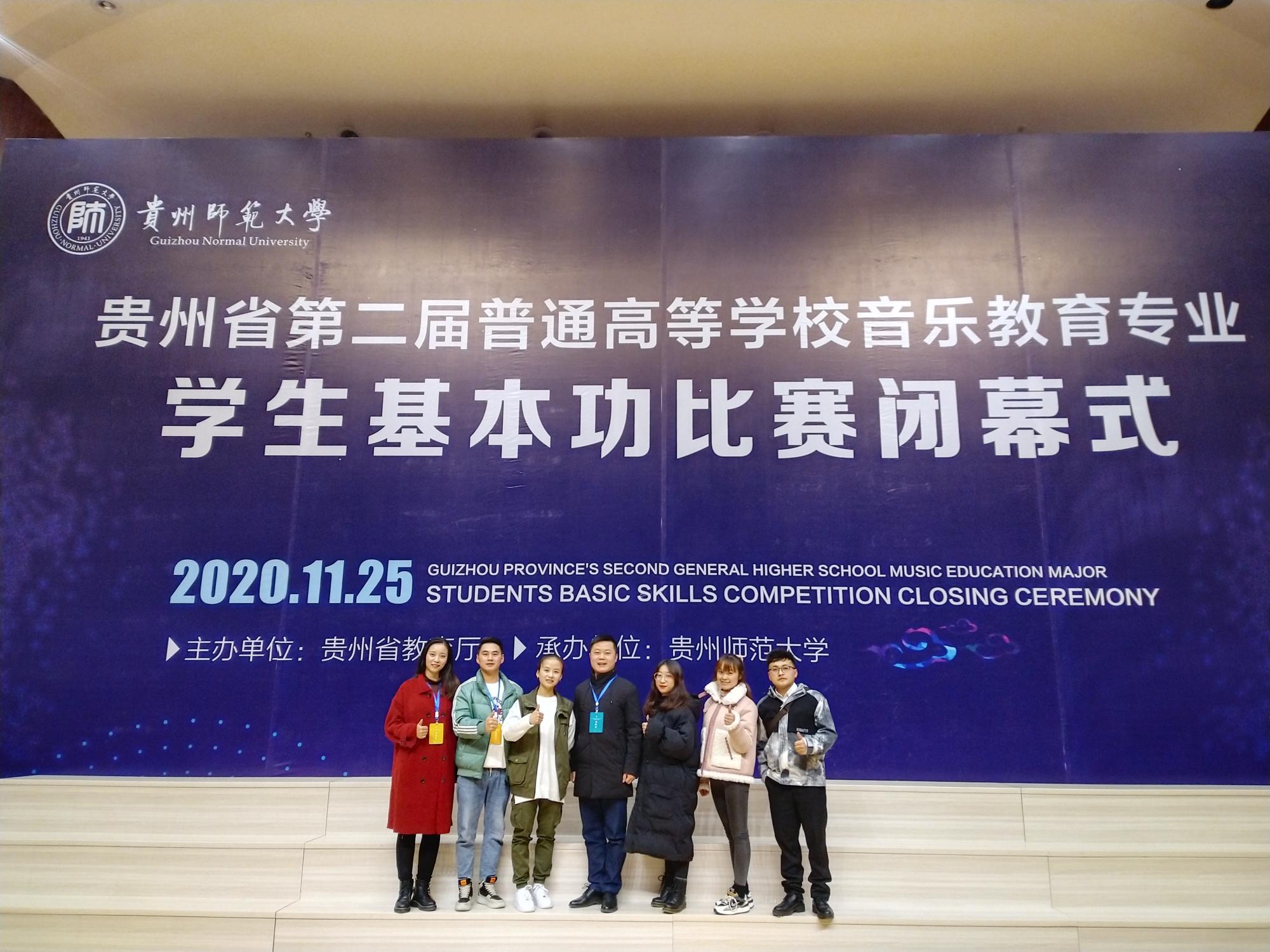 11月23日至25日,贵州省第二届普通高等学校音乐教育专业学生基本功比赛在贵州师范大学举行,我校选派了6名音乐学专业学生参加了比赛。经过三天的激烈角逐,我校参赛队伍脱颖而出,荣获团体二等奖。此外,我院2018级音乐学专业熊样同学还获得个人全能二等奖,2018级音乐学专业马伟健、韦莹璞同学获得个人全能三等奖。