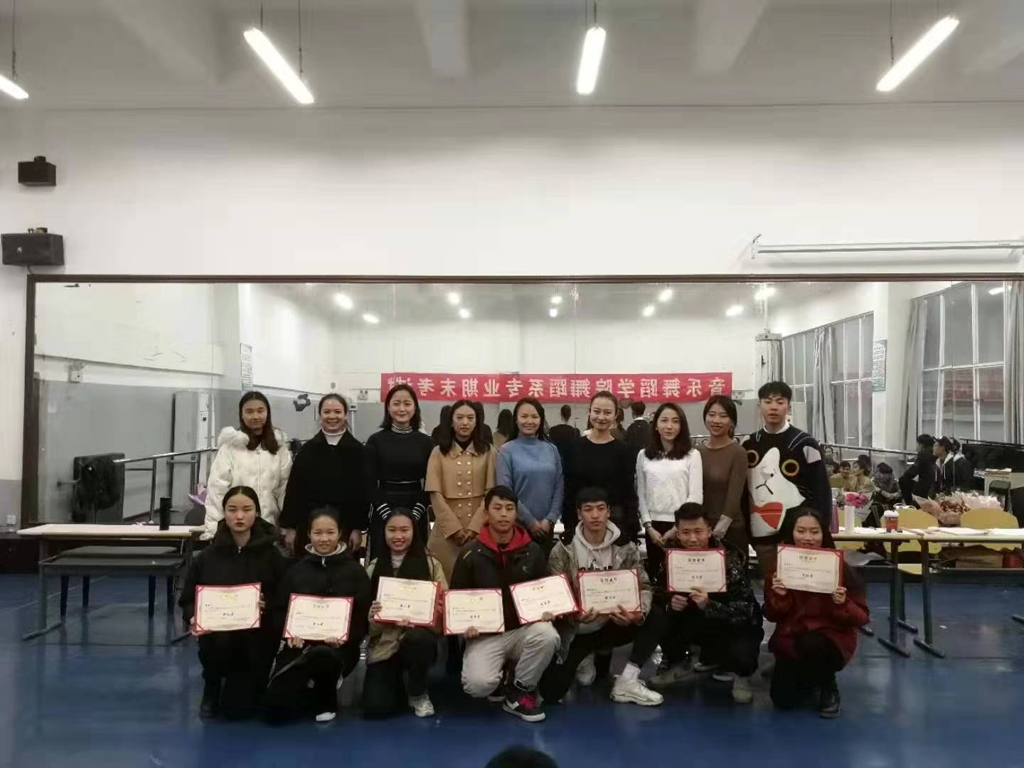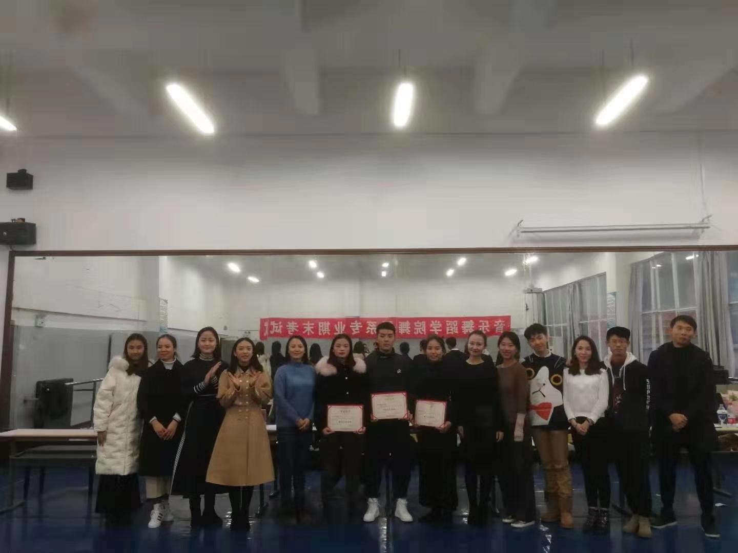 在考试前的技巧比赛中,班级以及个人的技巧在比赛中都表现良好,其中17级舞蹈学二班、18级舞蹈学男班、19级舞蹈学一班荣获最佳风采班级奖。在个人技巧中,周璇、杨丽、练真萍三位同学获得一年级新人奖;卢浩鹏、罗旭超、董超、罗宇宇荣获二年级进步奖;雷爽荣获三年级飞跃奖。希望在下个学期的技巧比赛中同学们都再创辉煌。