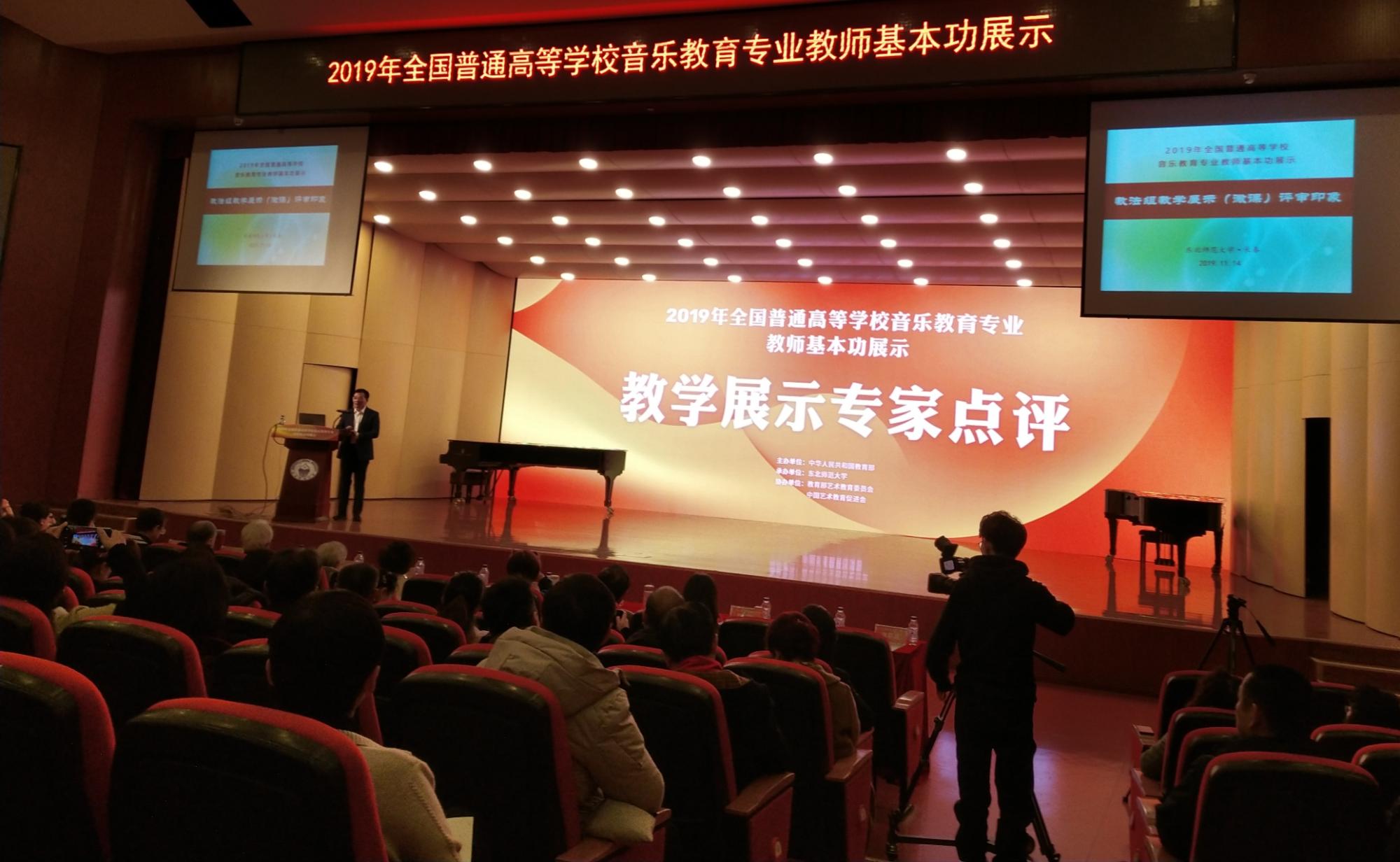 11月11日-15日,由教育部主办的2019年全国普通高等学校音乐教育专业教师基本功展示在音乐东北师范大学举行,来自全国30个省(市、区)和新疆生产建设兵团69所高校共175位教师参加展示。本活动是教育部在总结十届音乐教育专业本科学生基本功展示成功经验的基础上推出的一项创新活动,每两年举办一届。我院派出三名教师参加,在展示活动中,我院教师表现出了良好的精神风貌和全面的综合素质。经过三轮激烈角逐,王铎老师获得教法组个人全能三等奖和专业展示单项奖。