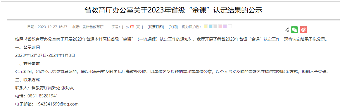 “金课”认定结果公示