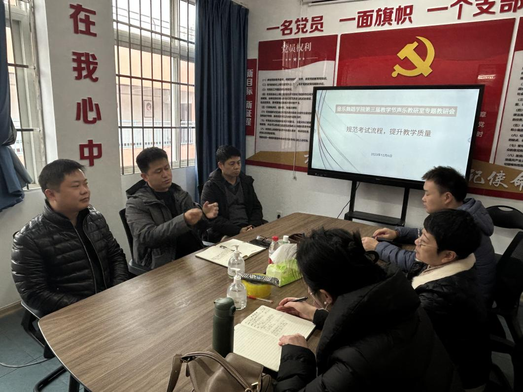 12月6日上午,声乐教研室在学院党员活动室召开了主题为“规范考试流程,提升教学质量”的专题教研会,会议由声乐教研室主任王铎老师主持。