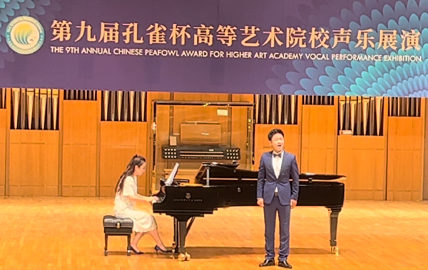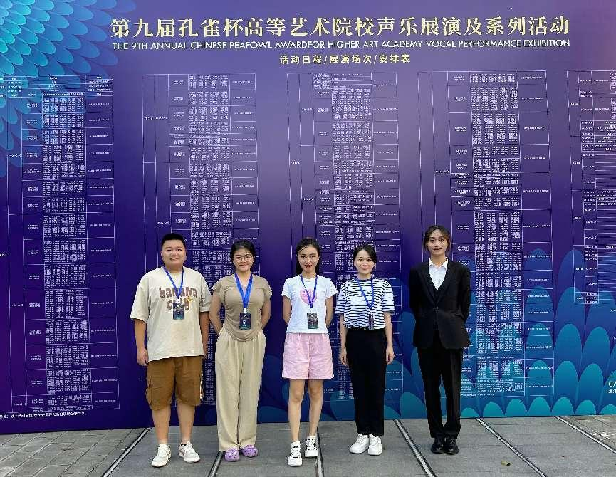 2023年7月28日至8月5日,第九届“孔雀杯”全国高等艺术院校声乐展演在浙江音乐学院隆重举行。来自西南大学、杭州师范大学等师范类院校,武汉音乐学院,西安音乐学院,星海音乐学院,哈尔滨音乐学院等十余所专业艺术院校在内的200余所高校的近2000名师生参加了本次展演。经过初、复赛的层层选拔,现场激烈角逐,我院师生在比赛中获得佳绩,取得了在同类赛事中的历史最好成绩。