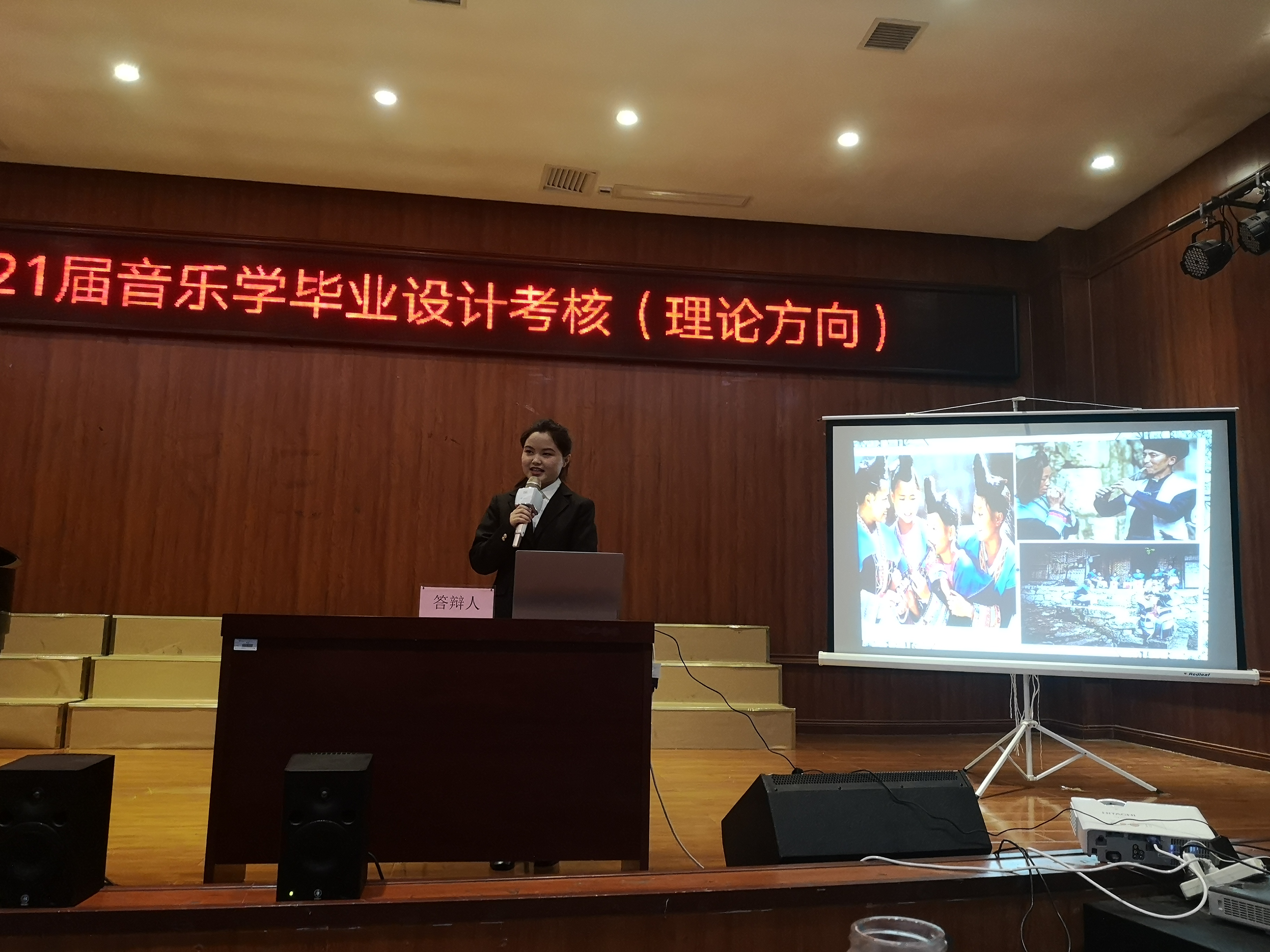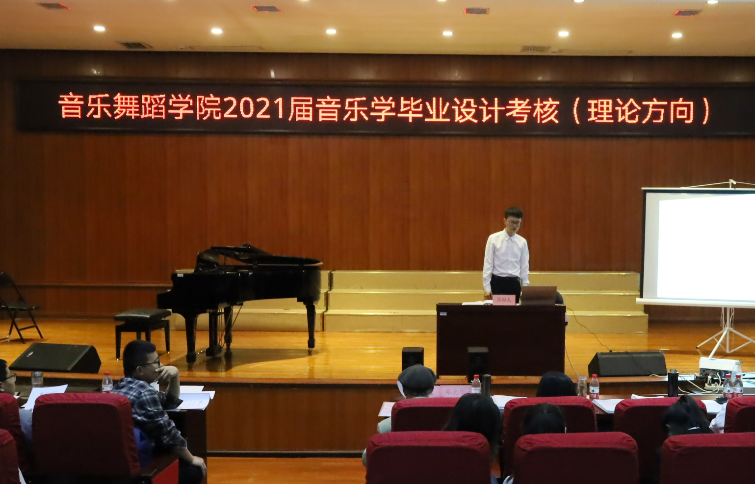 2021年4月24日9时,77779193永利官网集团音乐系理论教研室在六楼音乐厅开展2017级音乐学理论主修专业毕业论文第一次答辩,此次答辩涉及民族音乐学、中国传统音乐、理论作曲、钢琴调律四个专业,并有幸邀请到贵州师范大学教授、硕士研究生导师、我省著名音乐理论专家邓光华担任答辩主席。出席答辩评审的有舒然、孙芙炬、葛恩专、江怡舟、荆彦超、潘文海六位老师出席答辩评审,答辩会由理论教研室主任舒然主持。