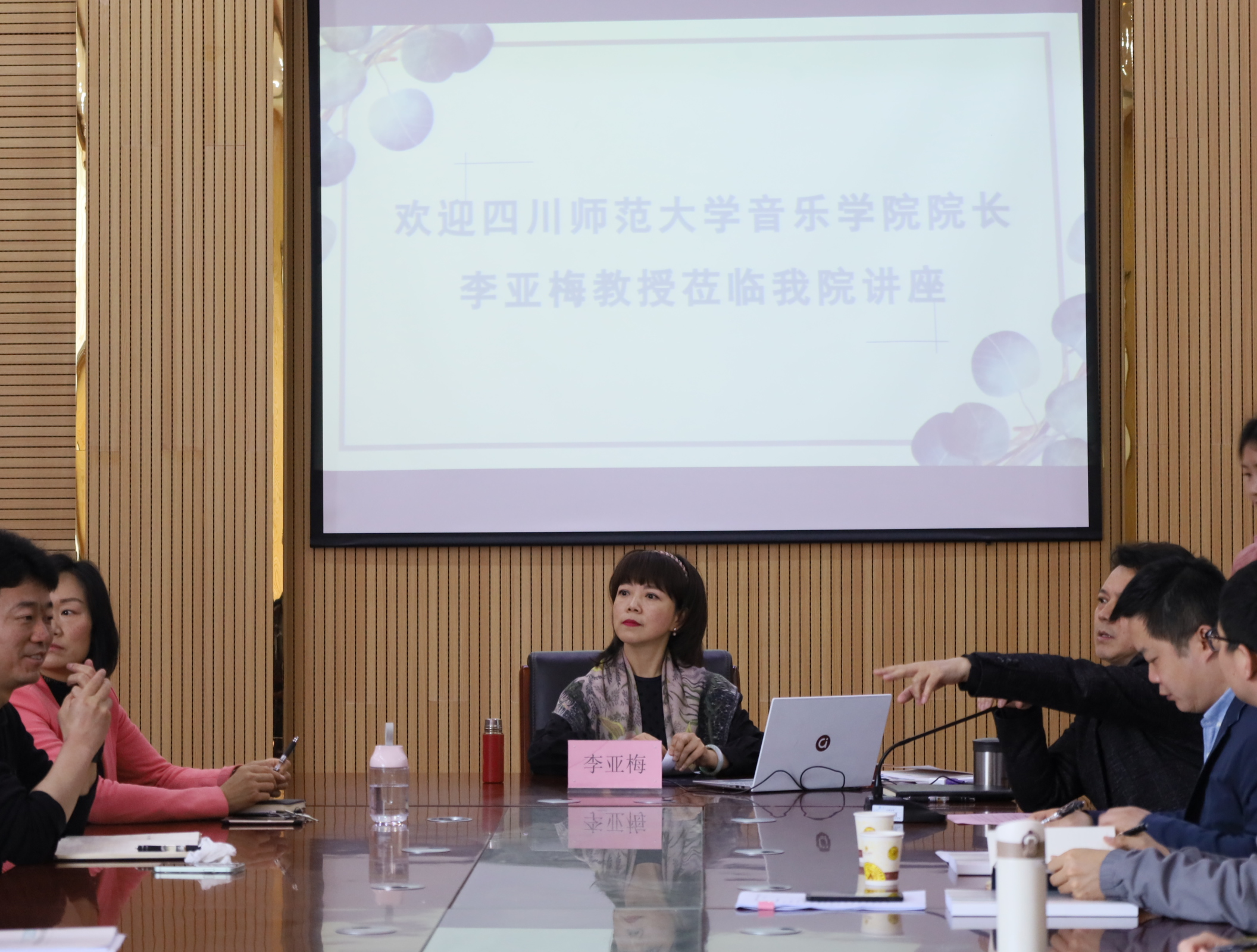 2021年4月27日,四川师范大学音乐学院院长李亚梅在我院六楼会议室进行师范认证专业交流,参加此次交流的有学院党委书记付巧、院长马关辉、党委副书记朱晨刚及全体老师。