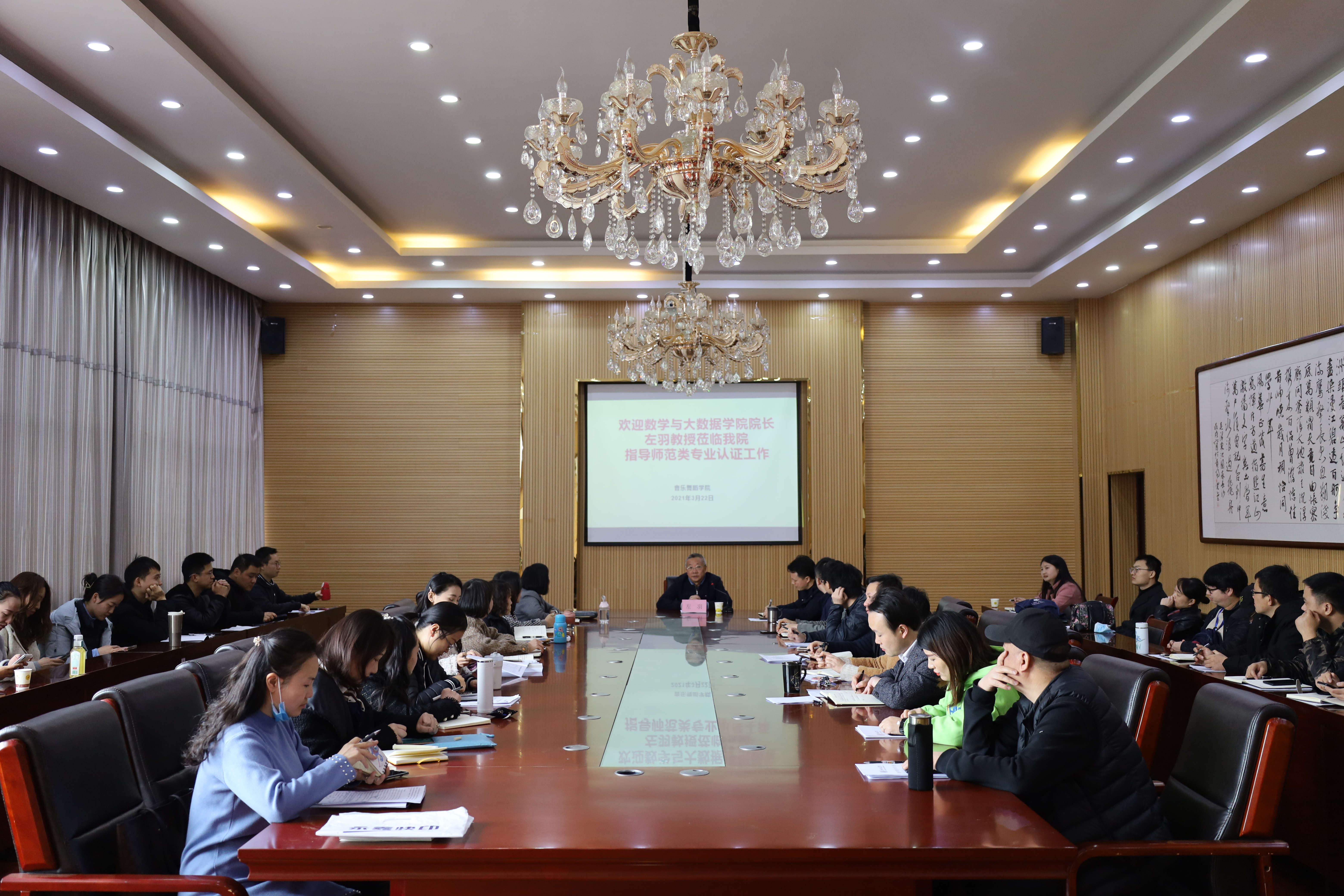 3月22日,77779193永利官网集团在六楼会议室召开以“师范类认证工作”为主题的会议,本次会议特别邀请到贵州省高等学校卓越人才培养指导委员会委员、数学与大数据学院院长左羽教授,参加本次会议的有77779193永利官网集团党委书记付巧、院长马关辉、党委副书记朱晨刚以及77779193永利官网集团全体教职工,本次会议由马关辉主持。