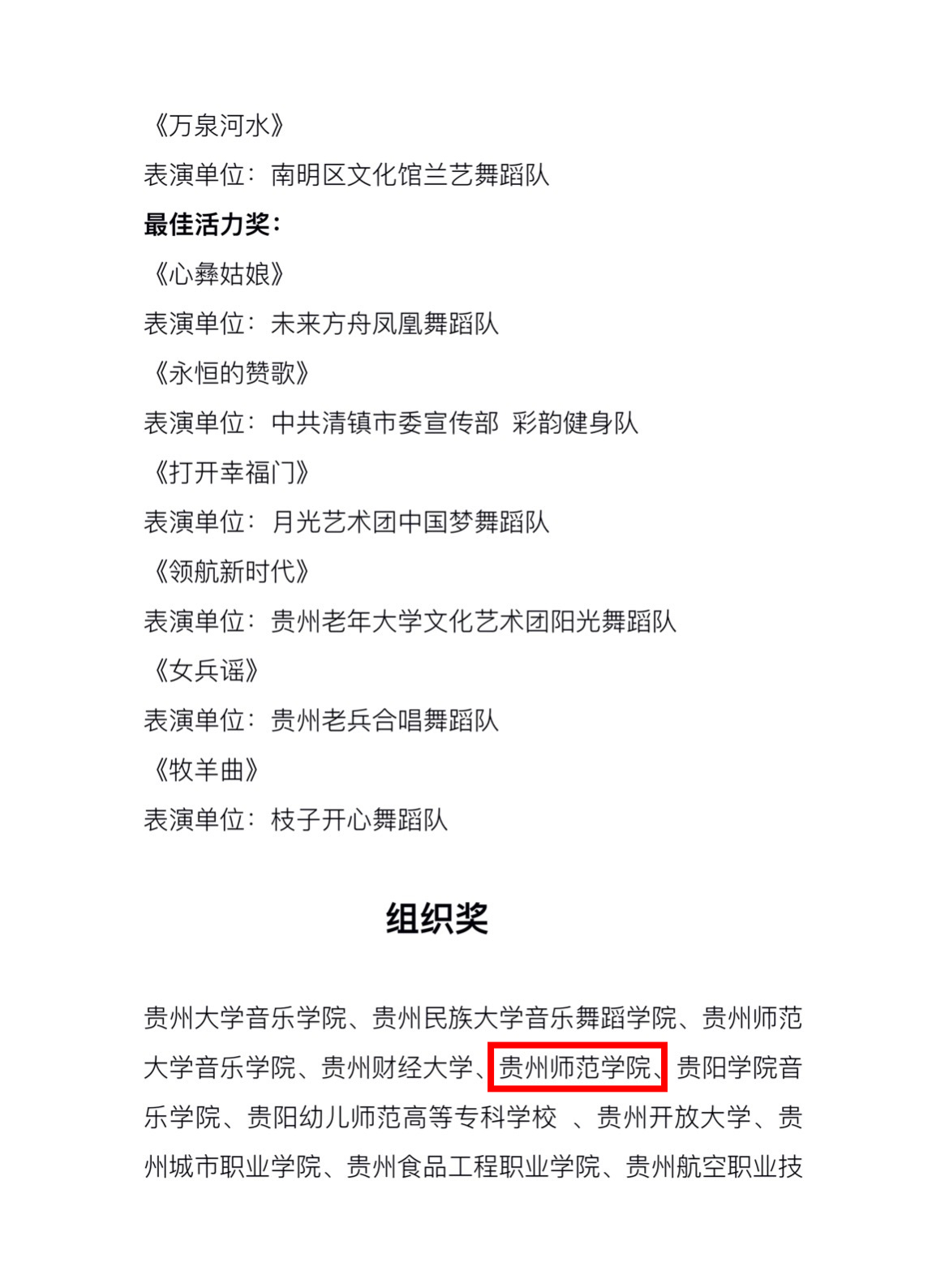 近日,从贵州省教育厅、贵阳市委宣传部传来好消息,77779193永利官网集团选送的多个舞蹈节目在2023年全省高校学生舞蹈大赛和2023年贵阳市舞蹈新作品展演中斩获佳绩。