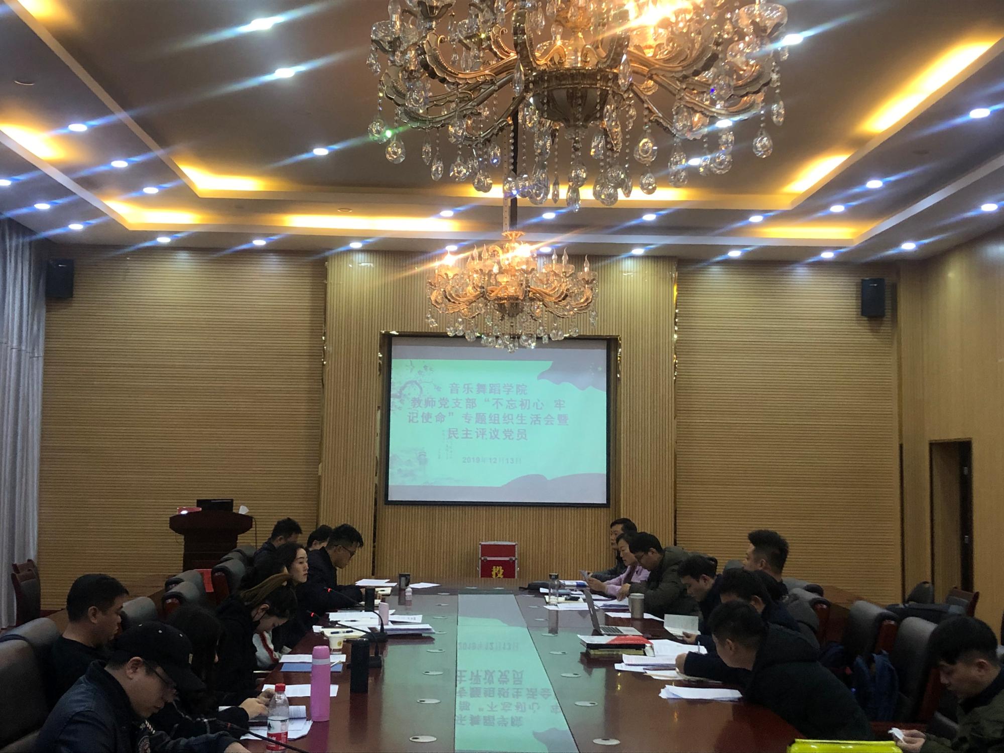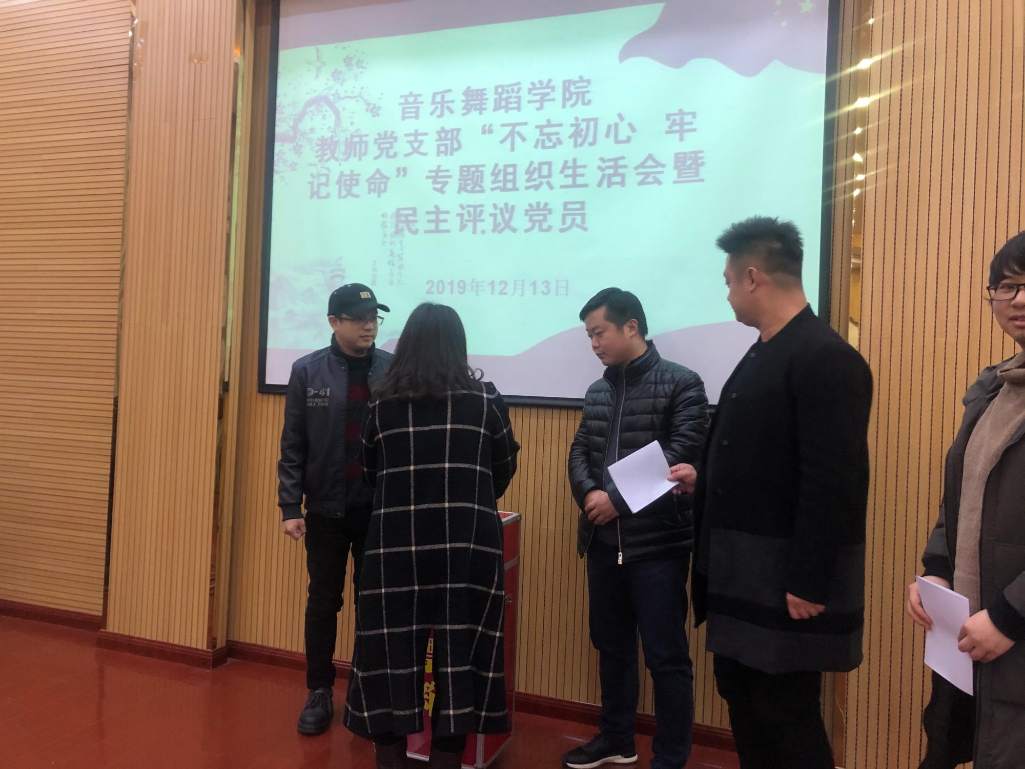 12月13日,77779193永利官网集团教师党支部在音乐学院会议室开展了“不忘初心 牢记使命”专题组织生活会暨民主评议党员。教师党支部书记刘昊佳主持本次组织生活会,全体党员参会。