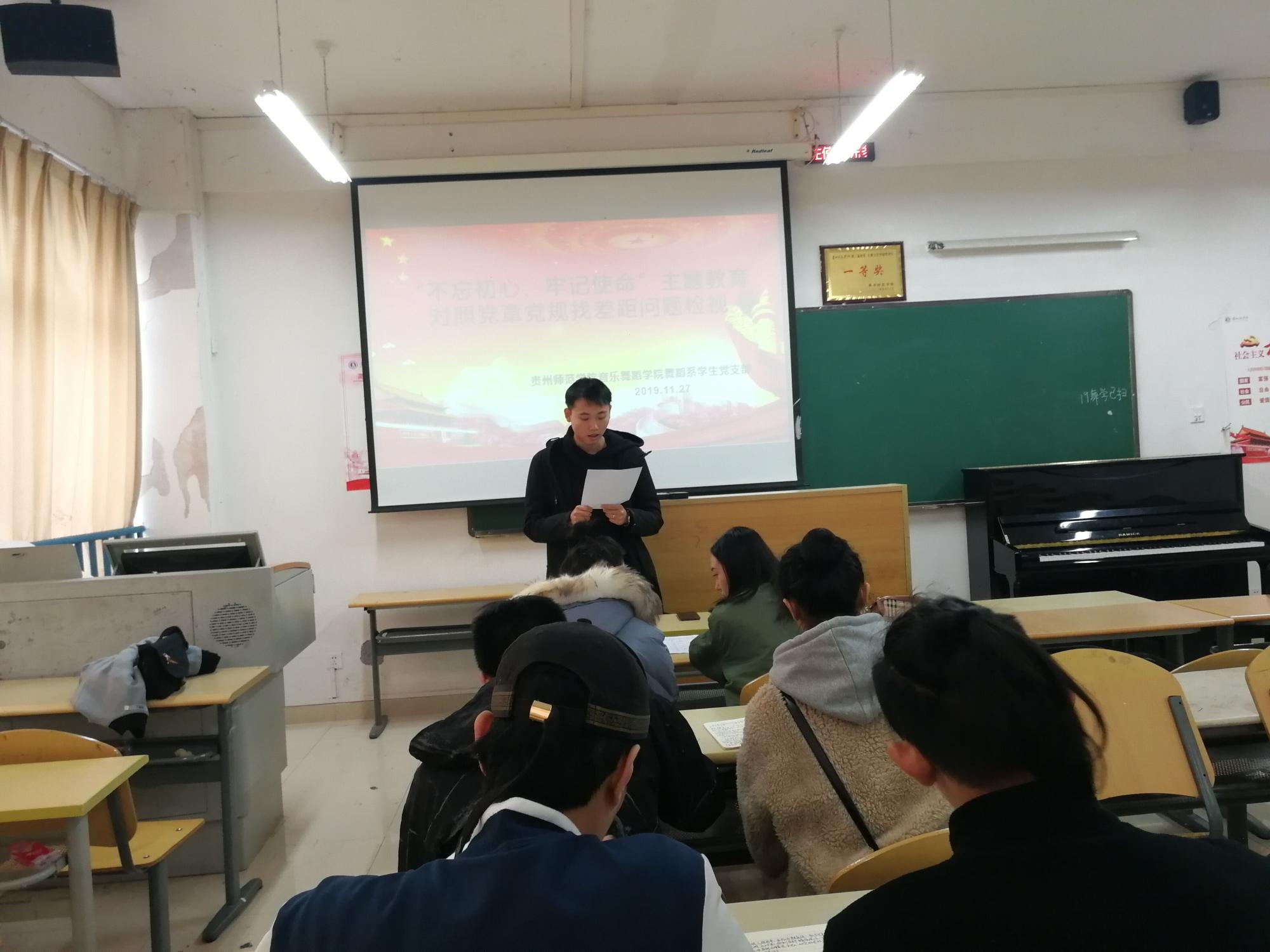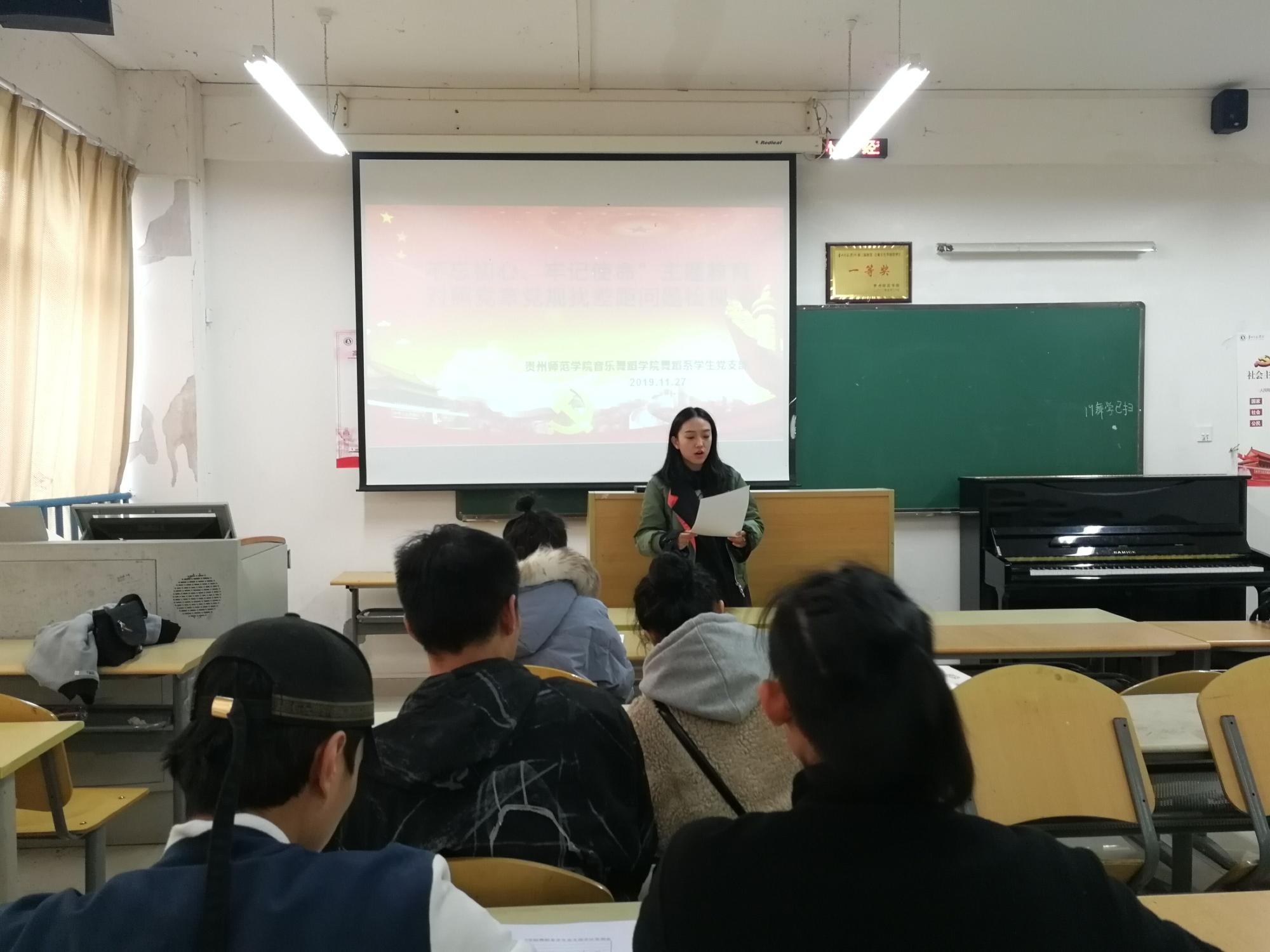 2019年11月27日中午,77779193永利官网集团舞蹈系学生党支部在逸夫楼A405教室开展了对照党章党规找差距专题会议。舞蹈系学生党支部书记黄河、宣传委员郑小龙、杜艳老师以及学生党员参加本次会议。