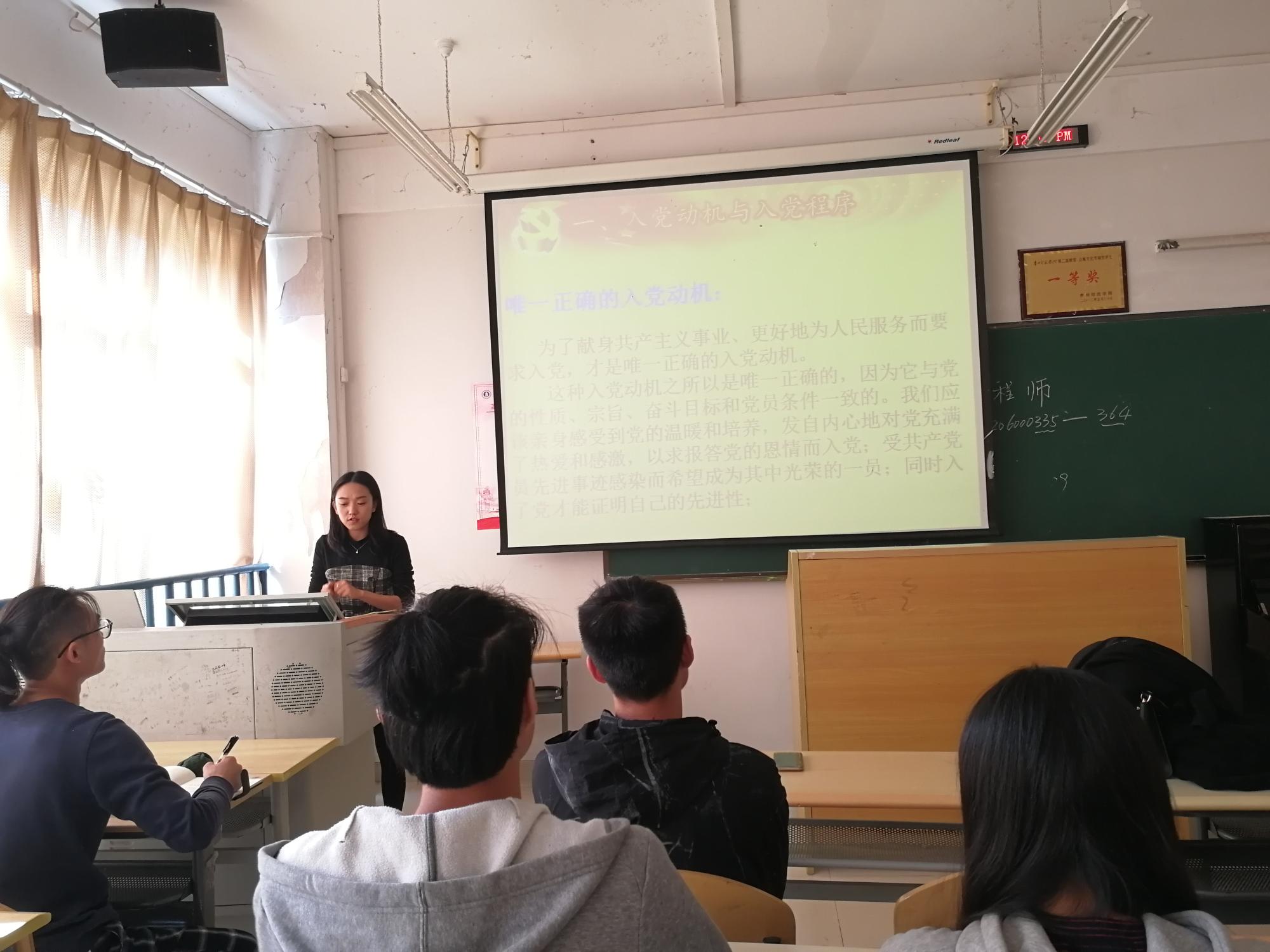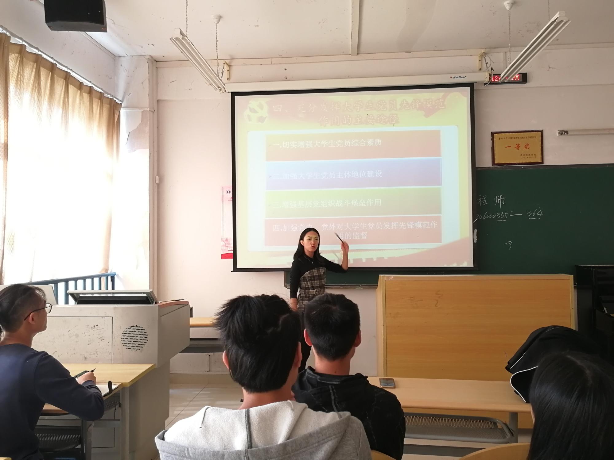 学生党支部书记黄河就入党动机与入党程序,以及如何发挥大学生党员的先锋模范作用来给党员同志们开展了此次党课,黄河书记提到,从我们回顾当初自己的入党初衷,以及现在是否还在坚持自己的初心等一系列问题,给党员同志们再次强调了入党动机的内在原因和真实目的。党员同志们也就如何发挥大学生先锋模范作用发表了自己的见解,黄河书记为大家讲解了国家领导对新的历史条件下共产党员先锋模范作用提出的要求,以及大学生党员的先锋模范作用内涵,以及存在的问题及原因。
