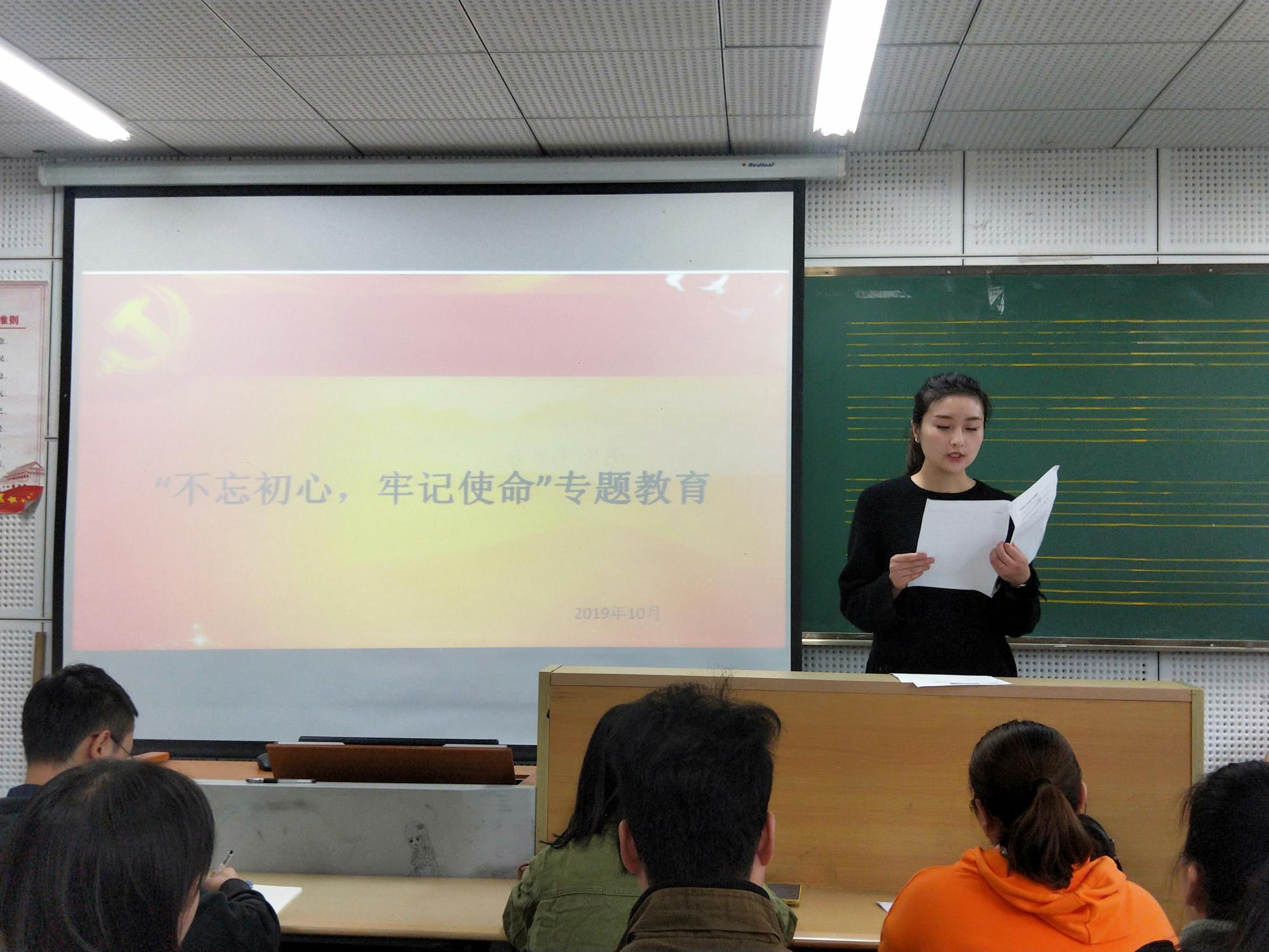 10月22日中午,77779193永利官网集团音乐系学生党支部在逸夫楼A705教室举行“不忘初心、牢记使命”主题教育的专题学习。音乐系学生党支部书记舒然,组织委员郭媺及全体党员参与本次学习,郭媺担任主讲人。