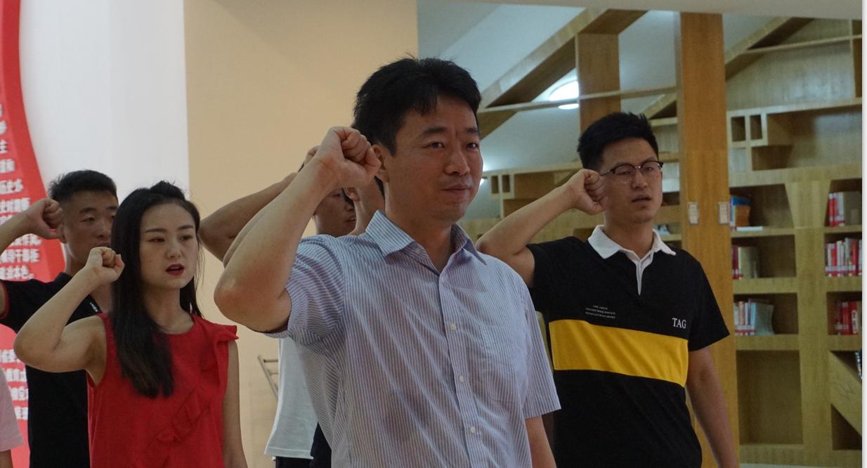 在鲜红的党旗下,朱晨刚带领全体党员举起右手、握紧拳头,庄严宣誓。通过组织老党员重温入党誓词和新党员入党宣誓活动,让老党员重温入党宣誓时的庄严承诺和坚定决心,让新党员深切的明白高举右拳的责任、承诺、信念和光荣。