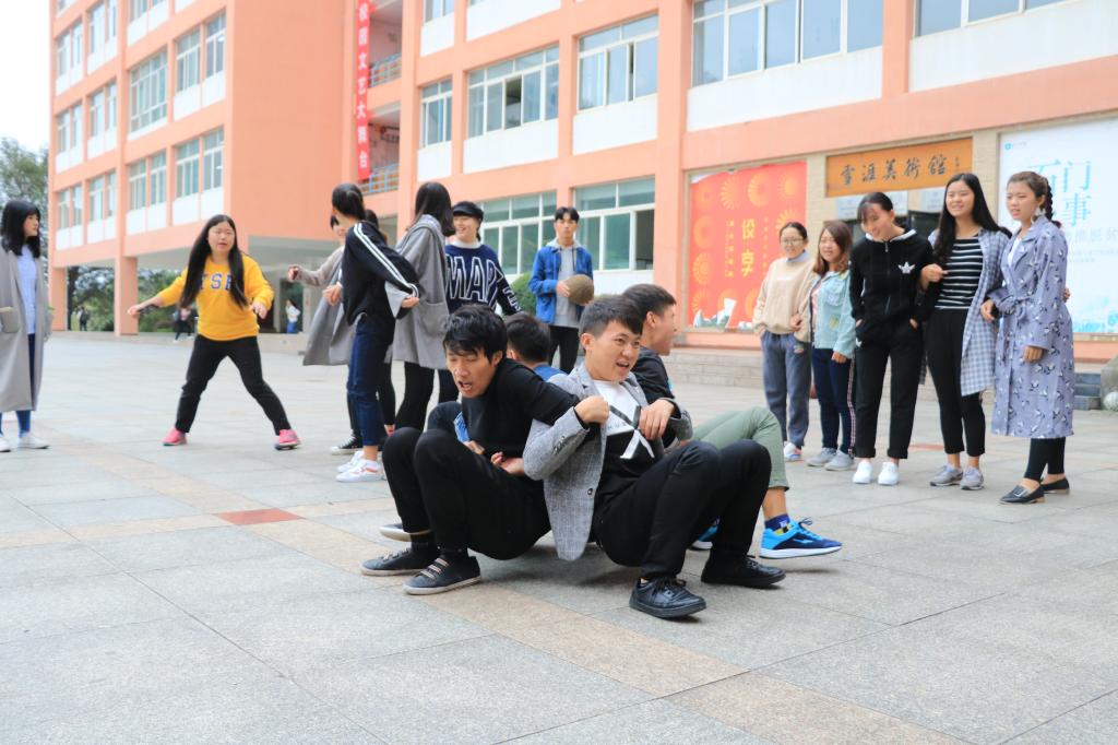 10月16日,艺术学院第44期入党积极分子培训班全体学员在凤凰广场展开素质拓展活动。
